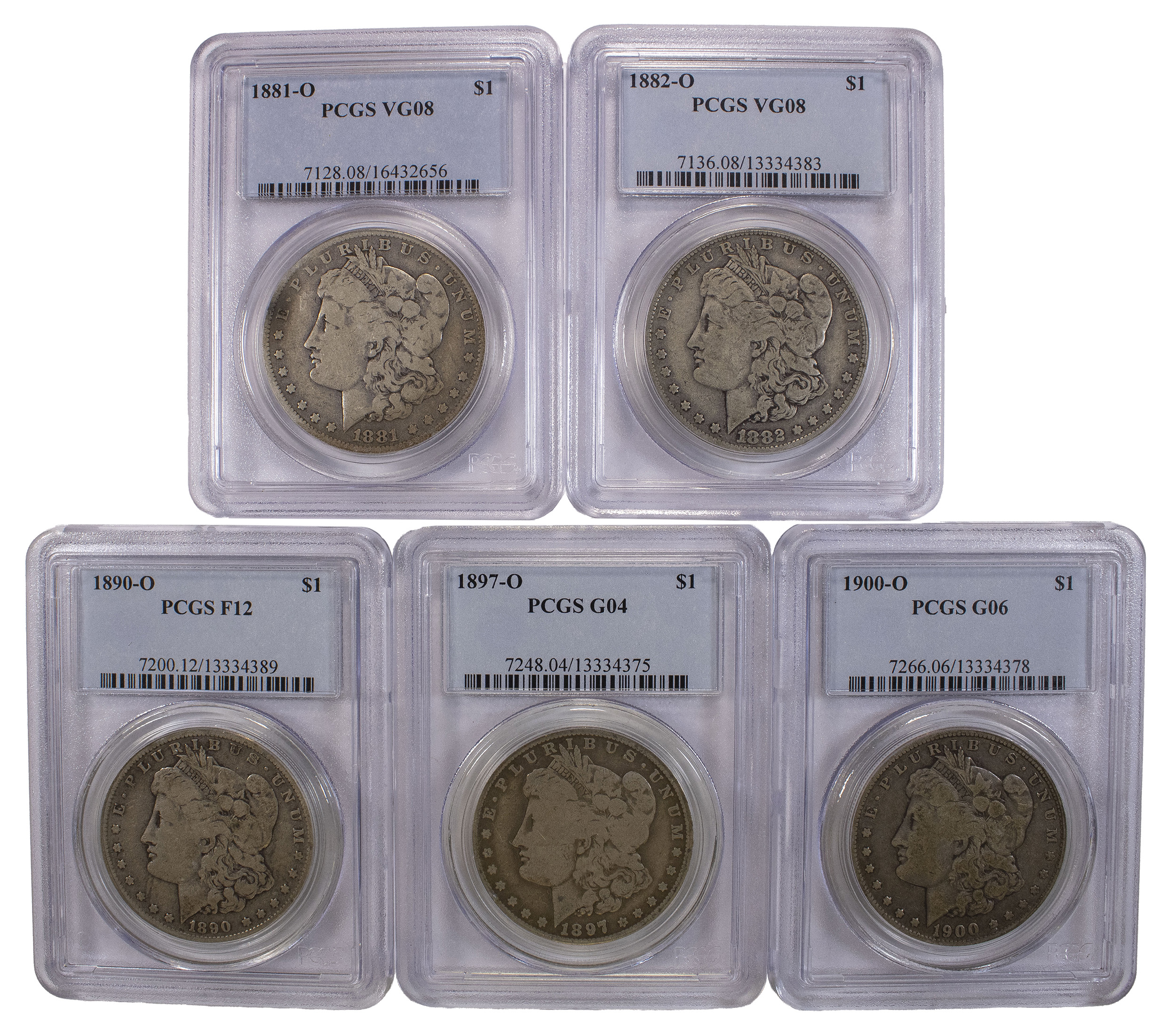 5 PCGS Certified Circulated Morgan Dollars