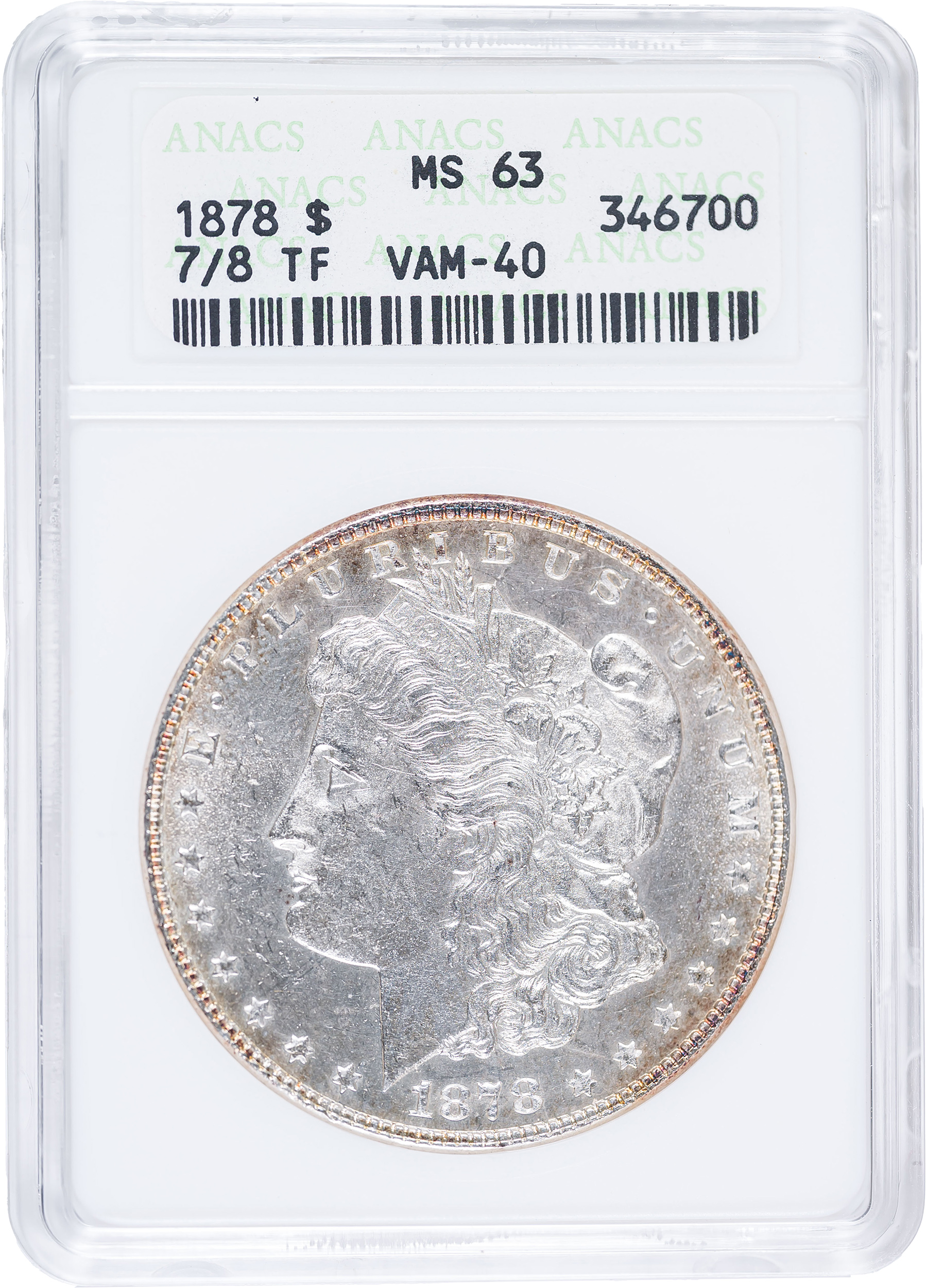 ANACS MS-63 VAM-40 1878 7/8 Tailfeathers Dollar