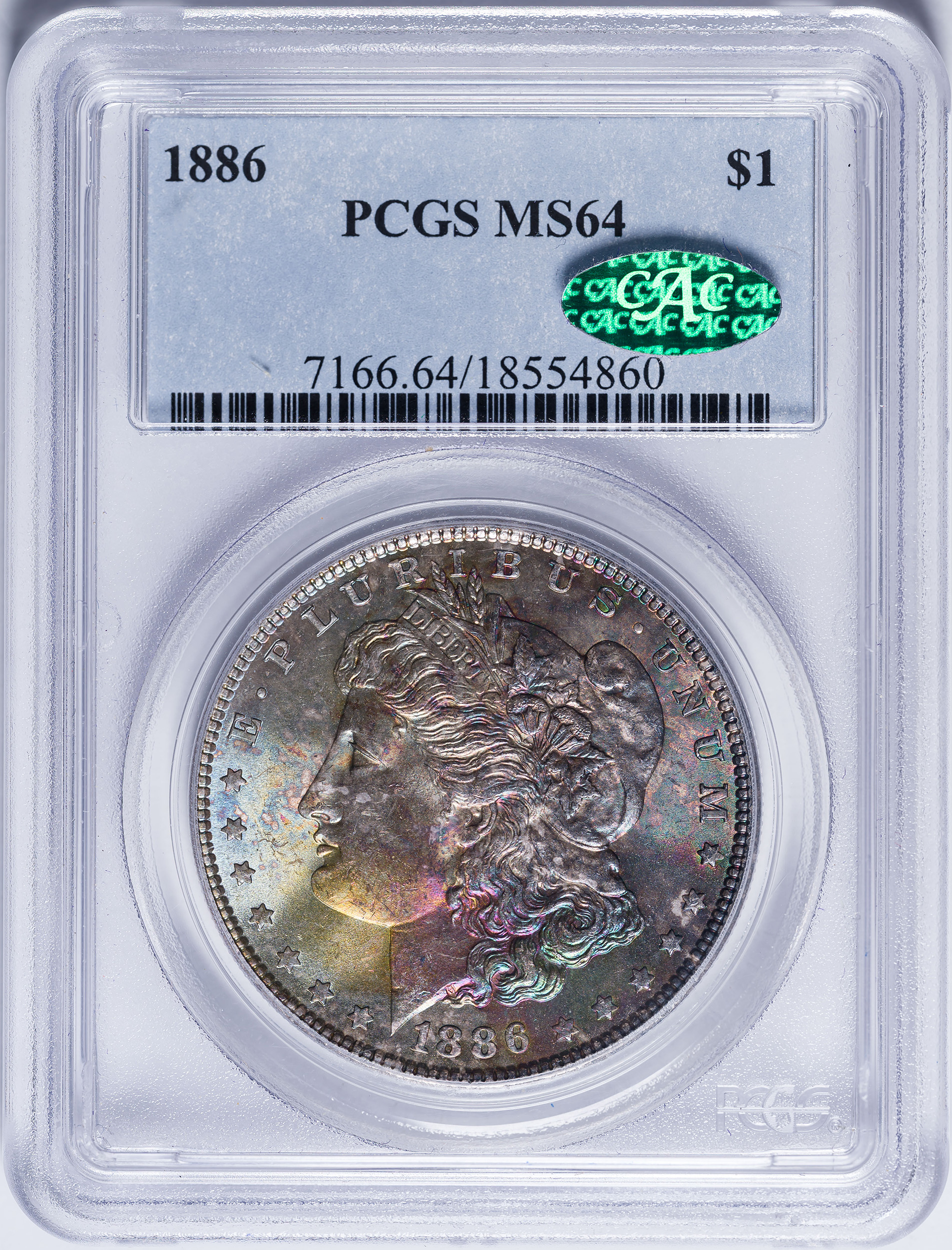PCGS MS-64 CAC Toned 1886 Morgan Dollar