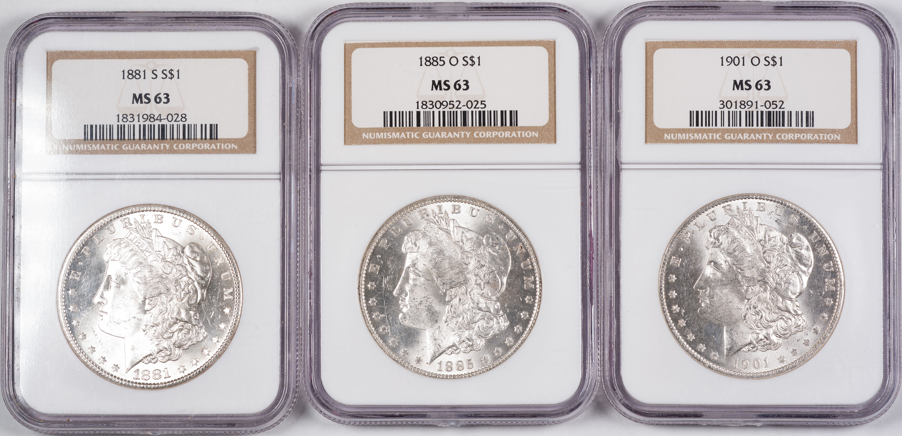 3 Different NGC MS-63 Morgan Dollars