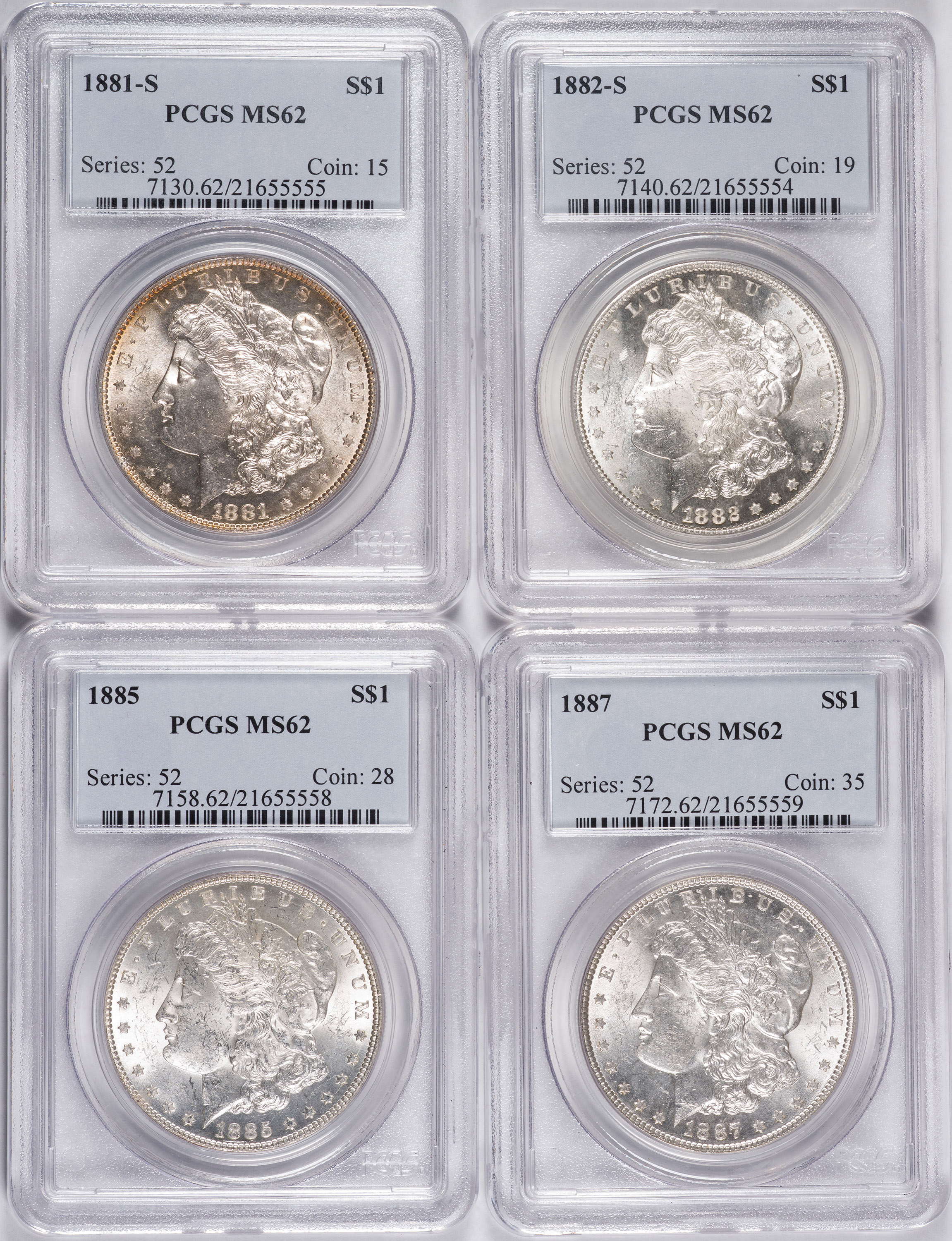 4 Different PCGS MS-62 Morgan Dollars