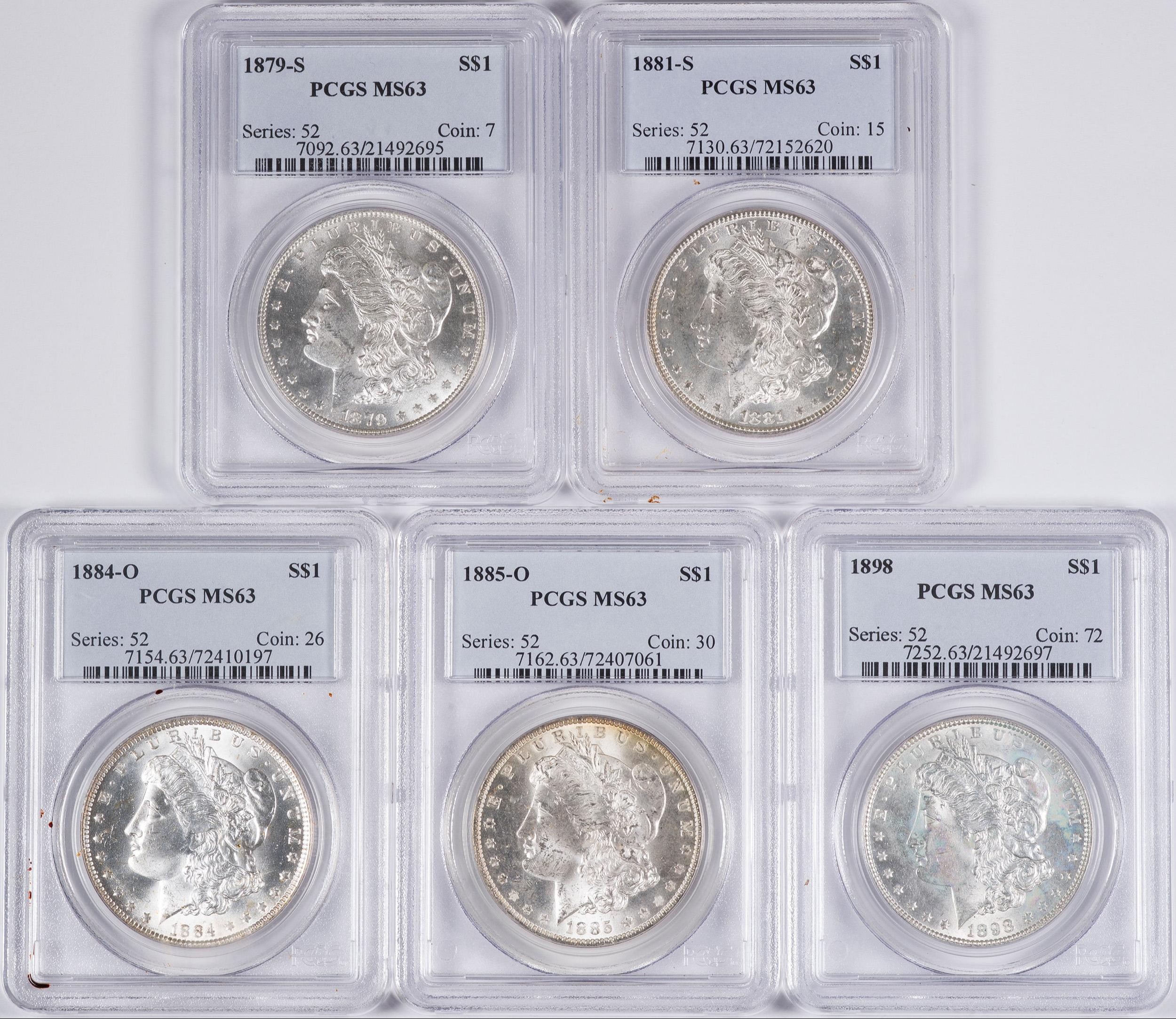5 Different PCGS MS-63 Morgan Dollars
