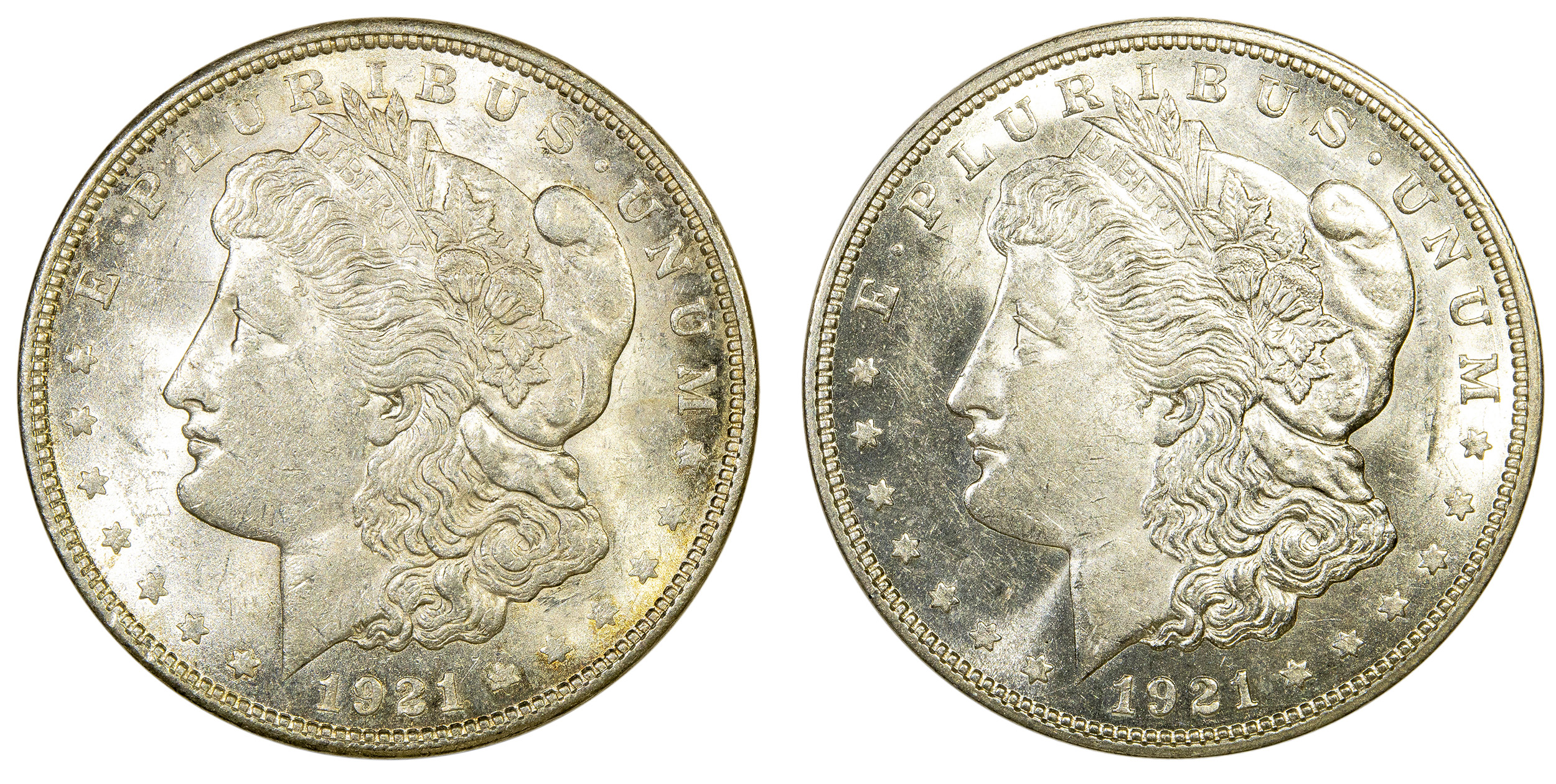 Pair of 1921-Dated Morgan Dollars