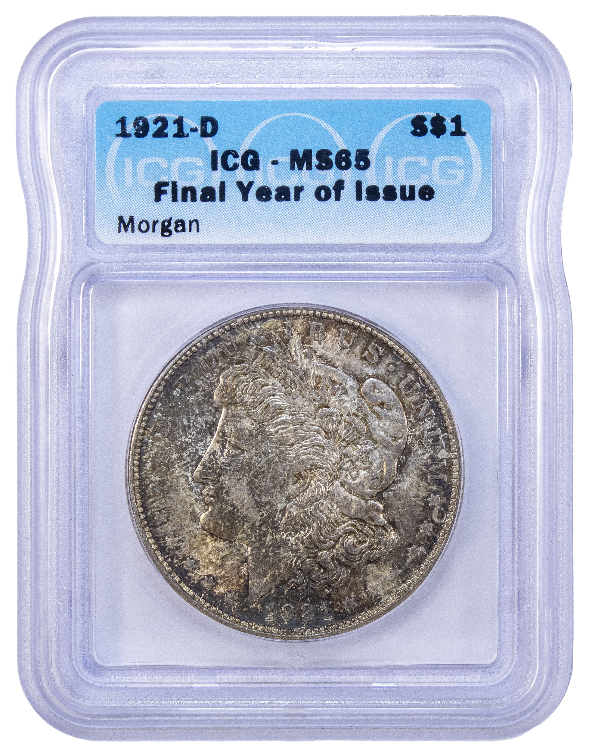 ICG MS-65 Toned 1921-D Morgan Dollar