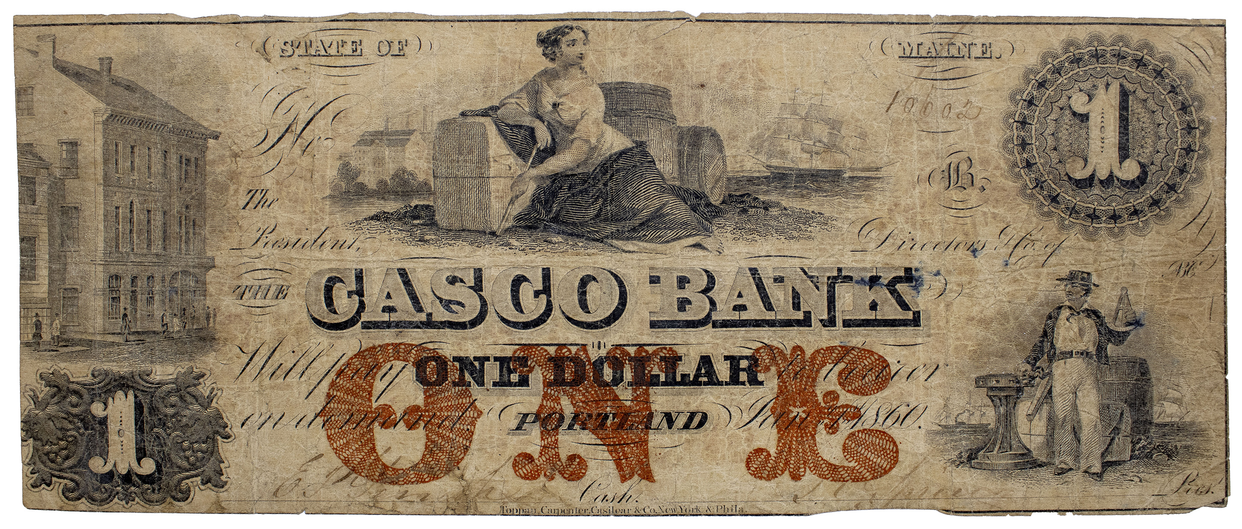 Maine. Portland. Rare Casco Bank $1