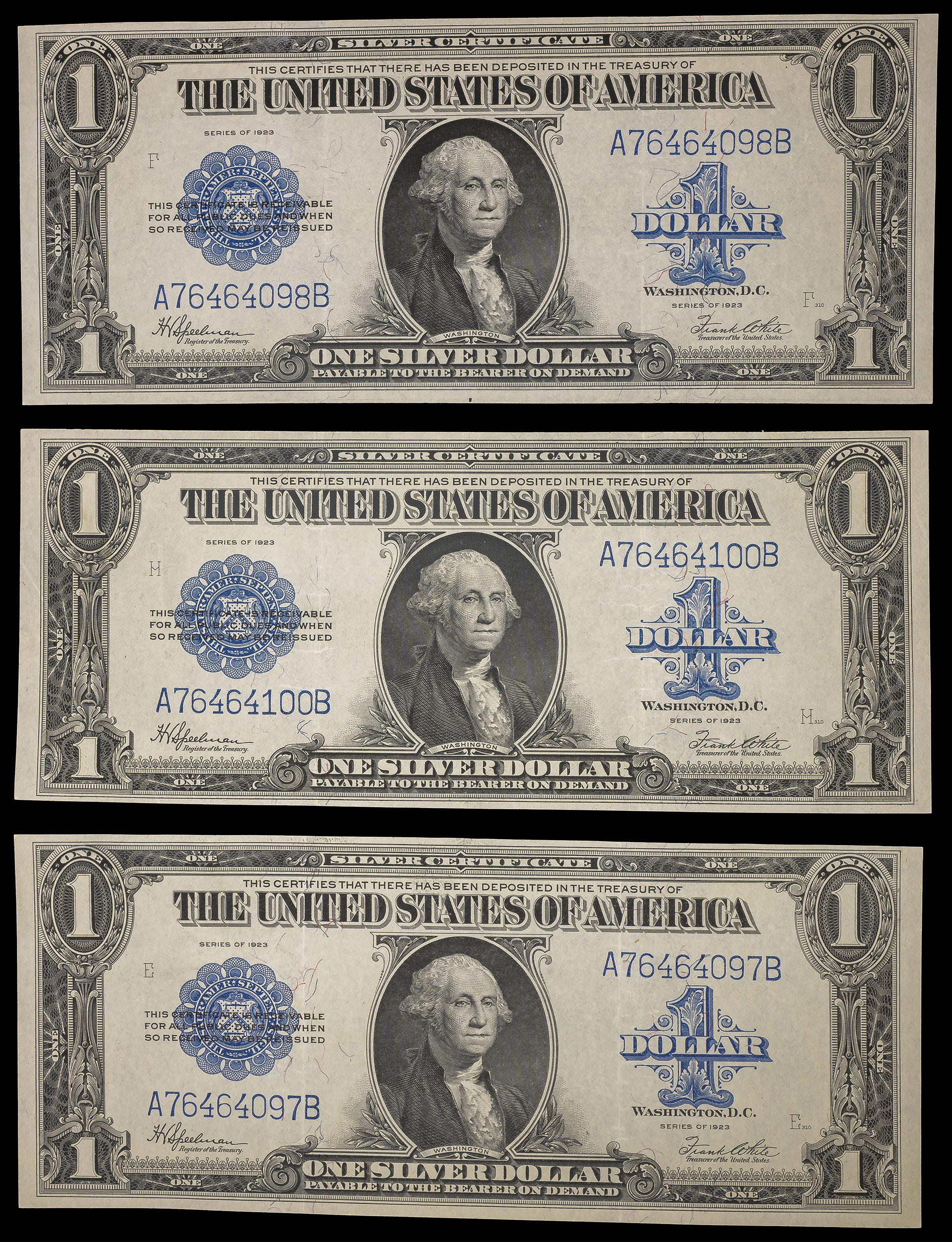 3 Pcs EF/AU Nearly Consecutive 1923 $1
