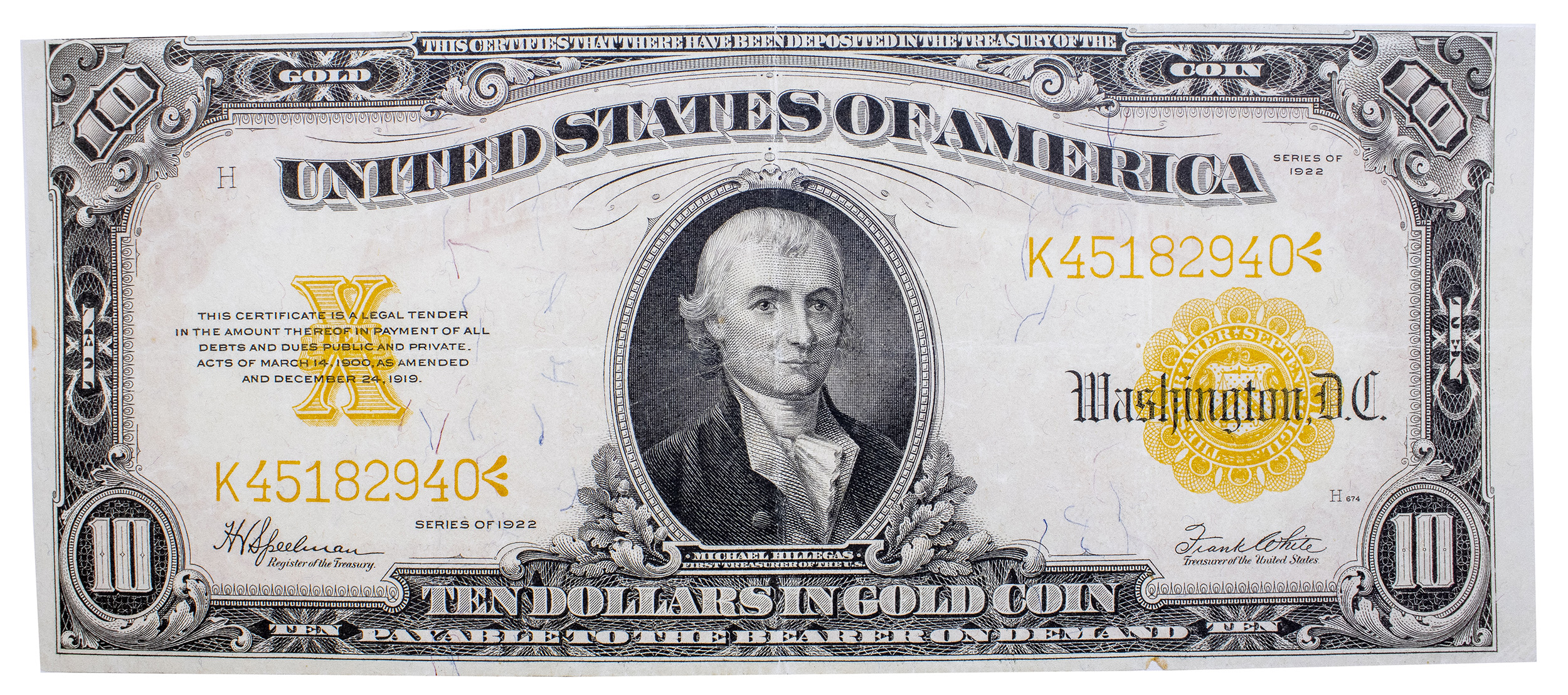 VF to EF 1922 $10 Gold Certificate