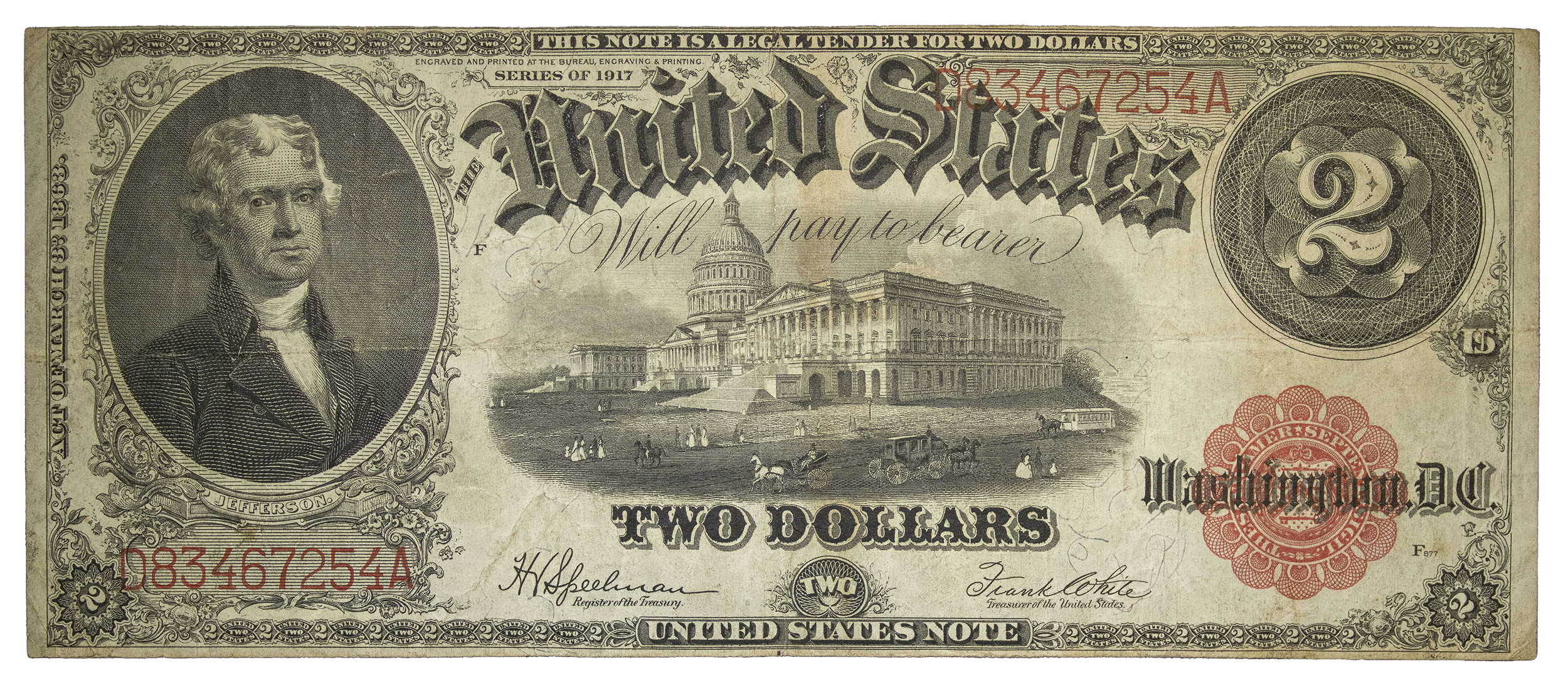 Fine Series 1917 $2 United States Note