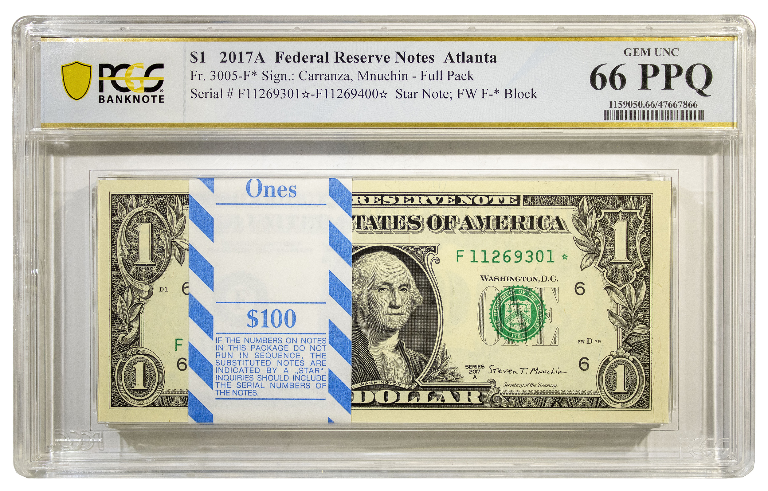 PCGS Gem-66 2017-A Bank-wrapped $1 Star Notes