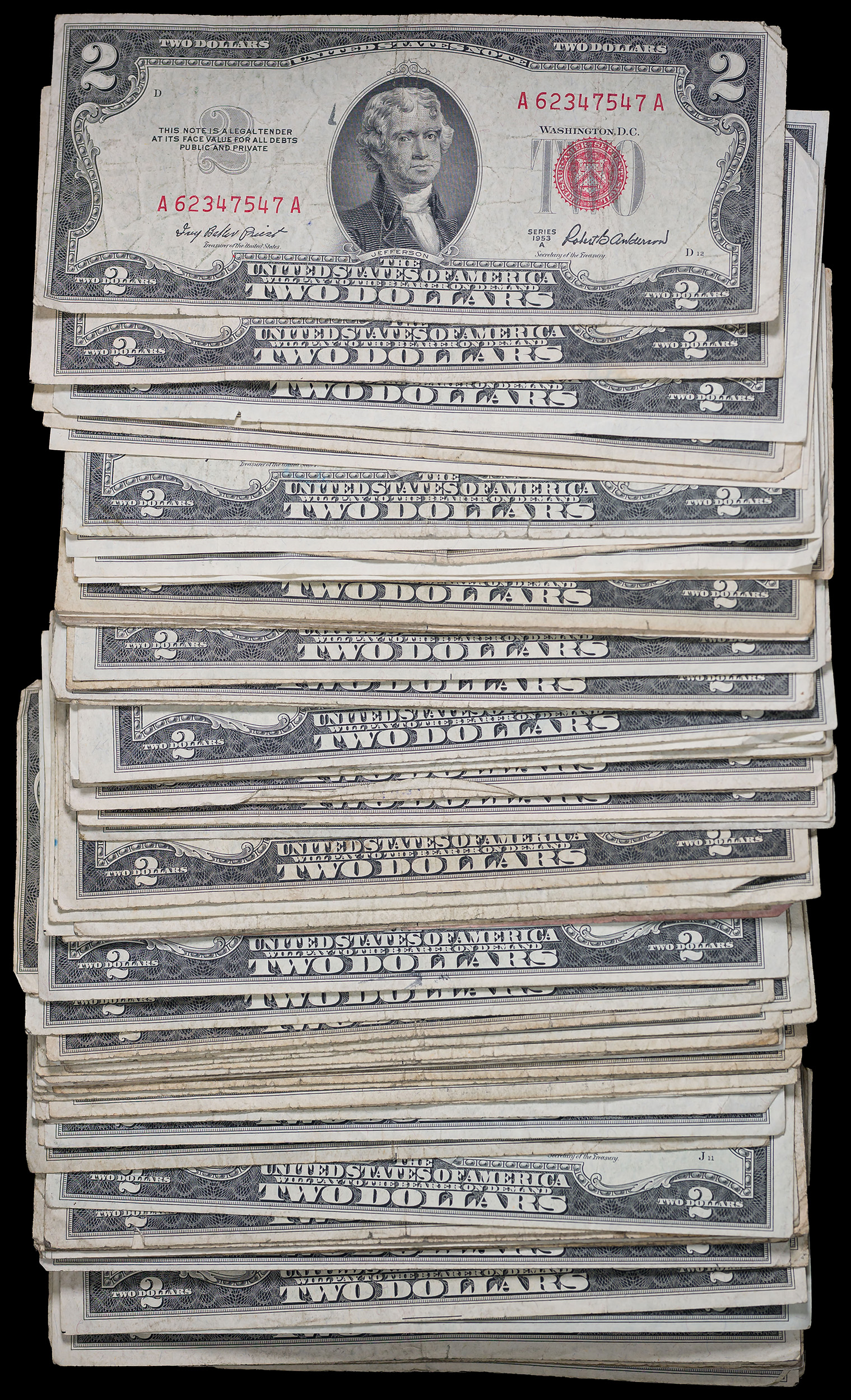 100 PCS 1953A $2 Red Seal U.S. Notes