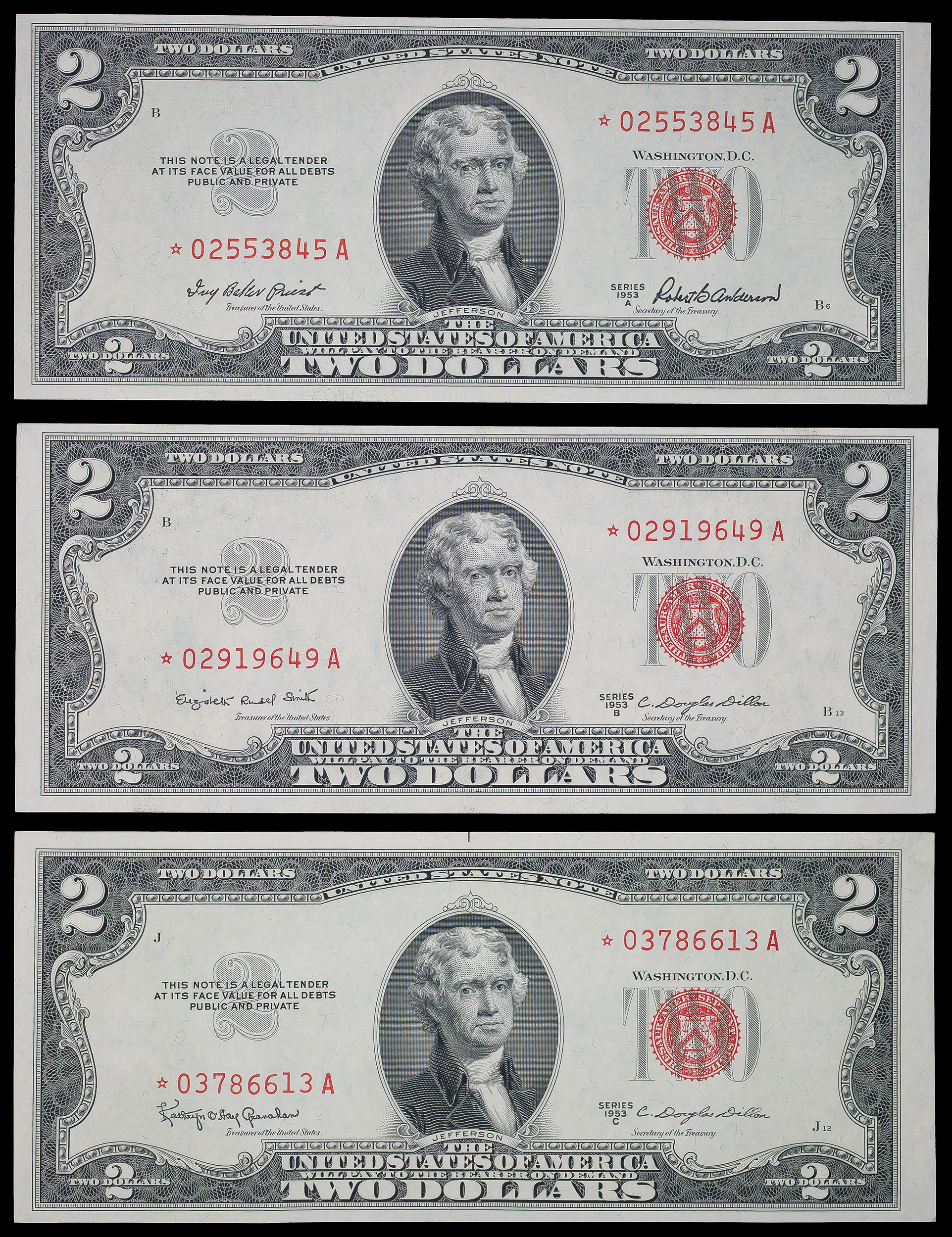 Trio Of CU 1953 $2 Star Notes