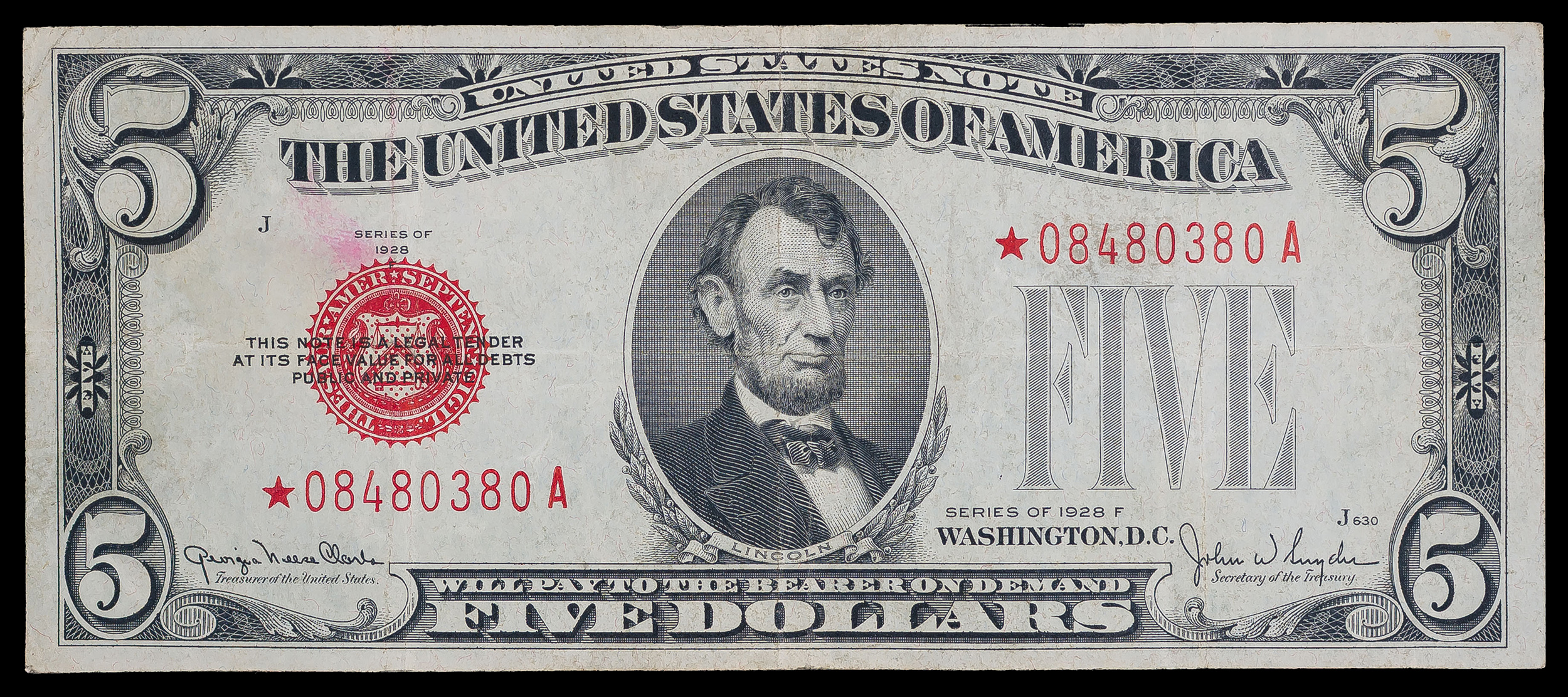 VF 1928-F $5 Star Note