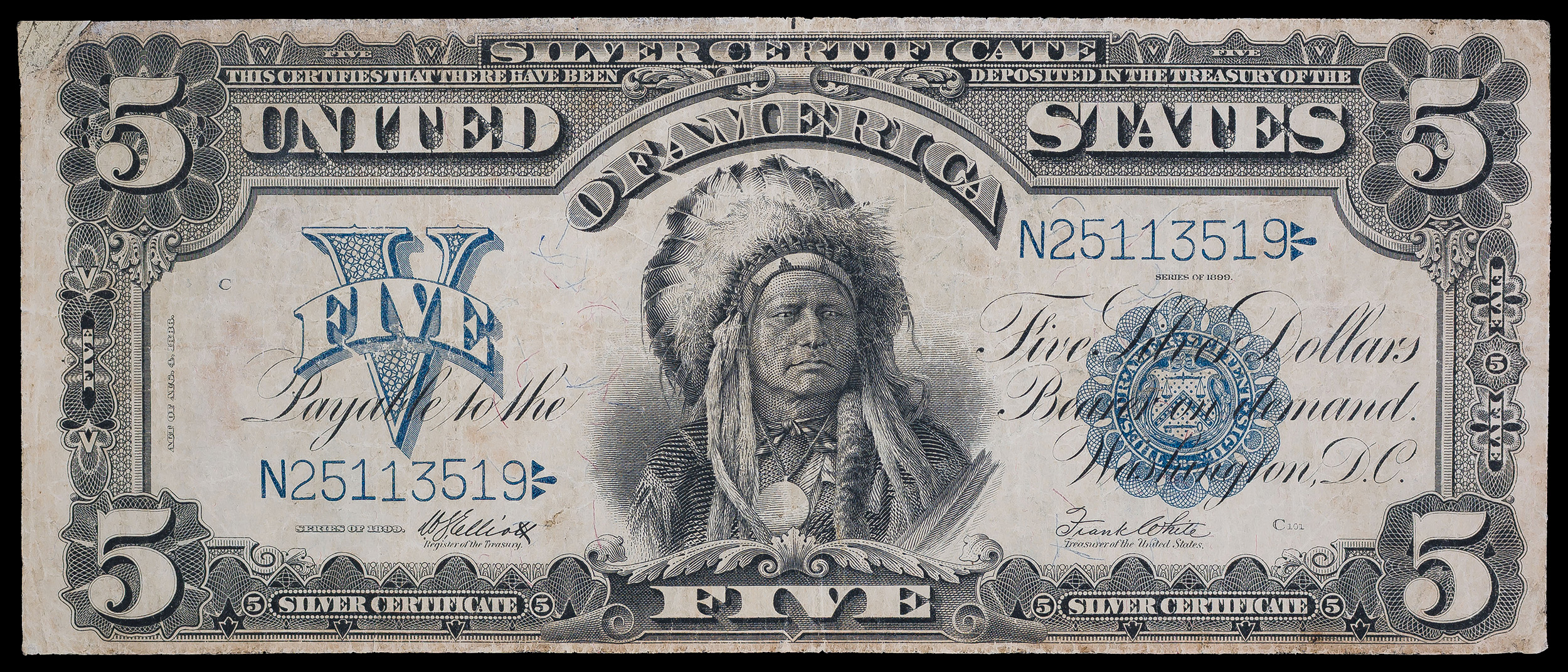 VF Details Series 1899 Indian Chief $5 Note