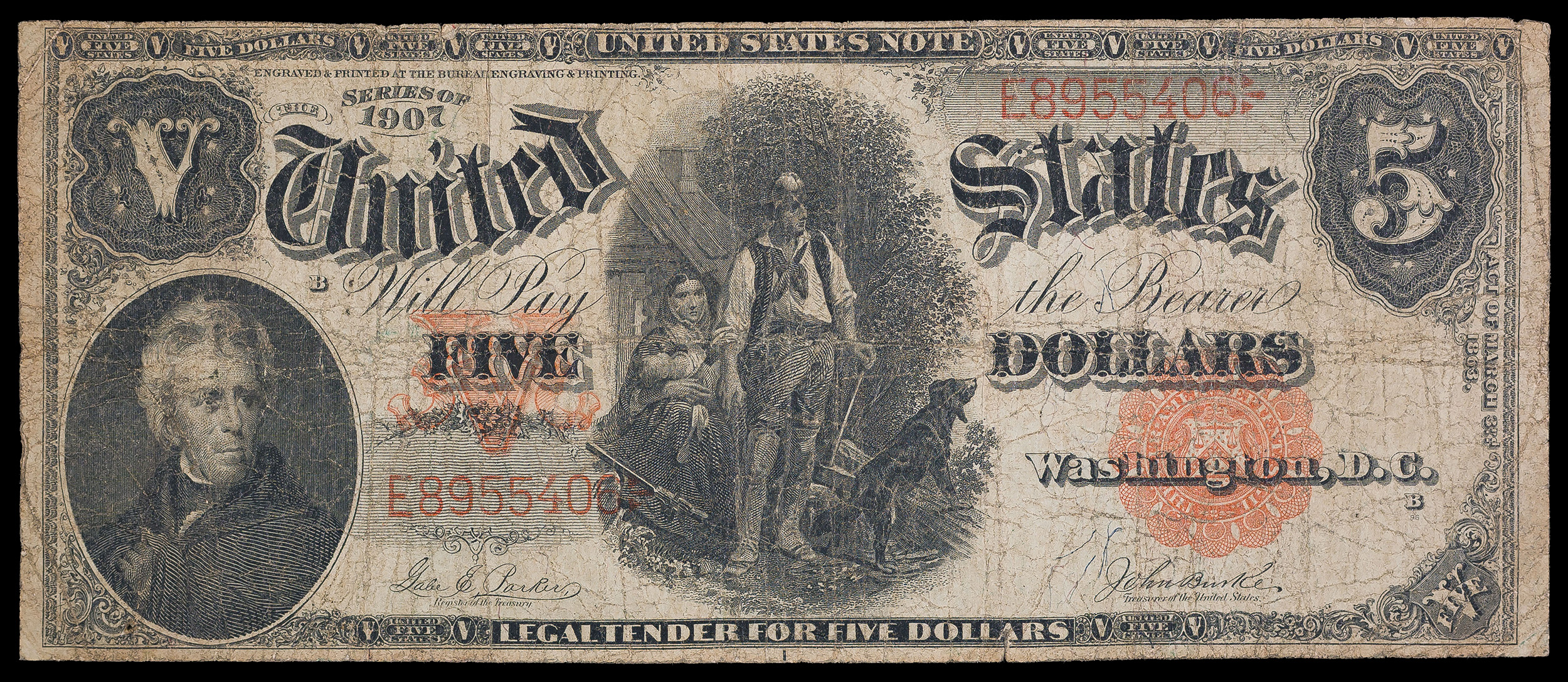 Affordable 1907 Woodchopper $5 Note