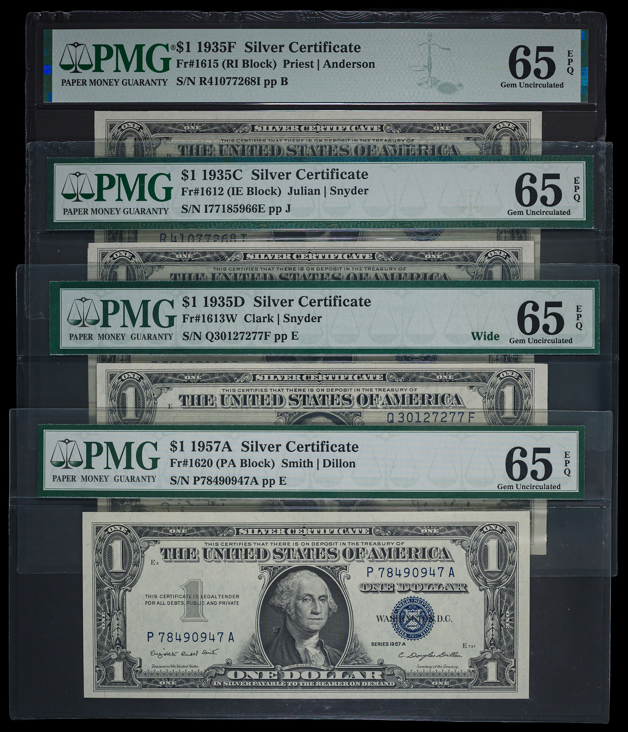 PMG Gem-65 EPQ $1 Silver Certificate Foursome