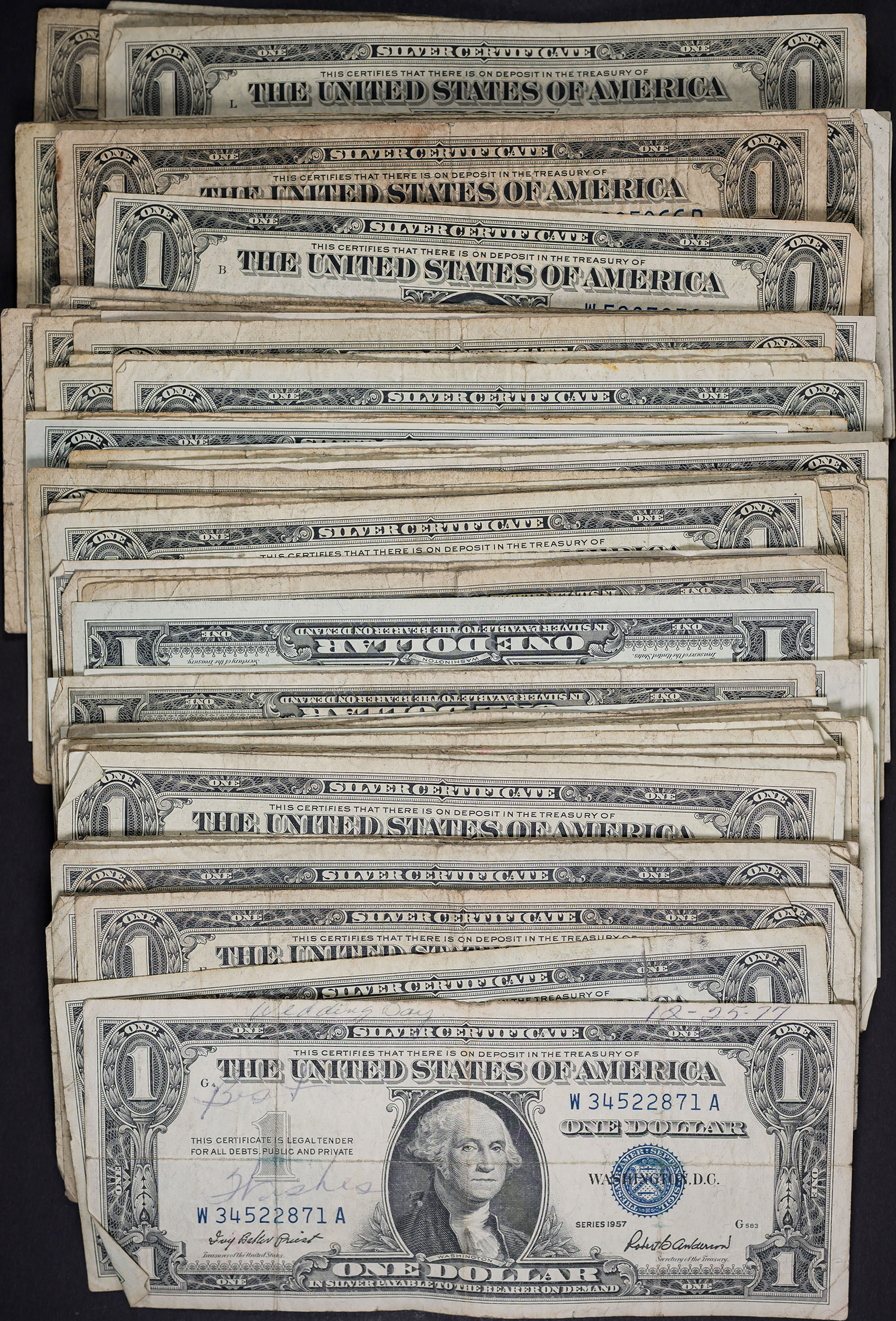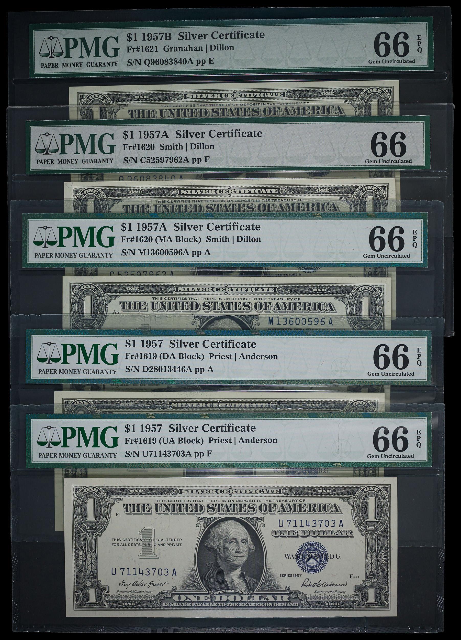 PMG Gem-66 1957 $1 Silver Certificate Quintet