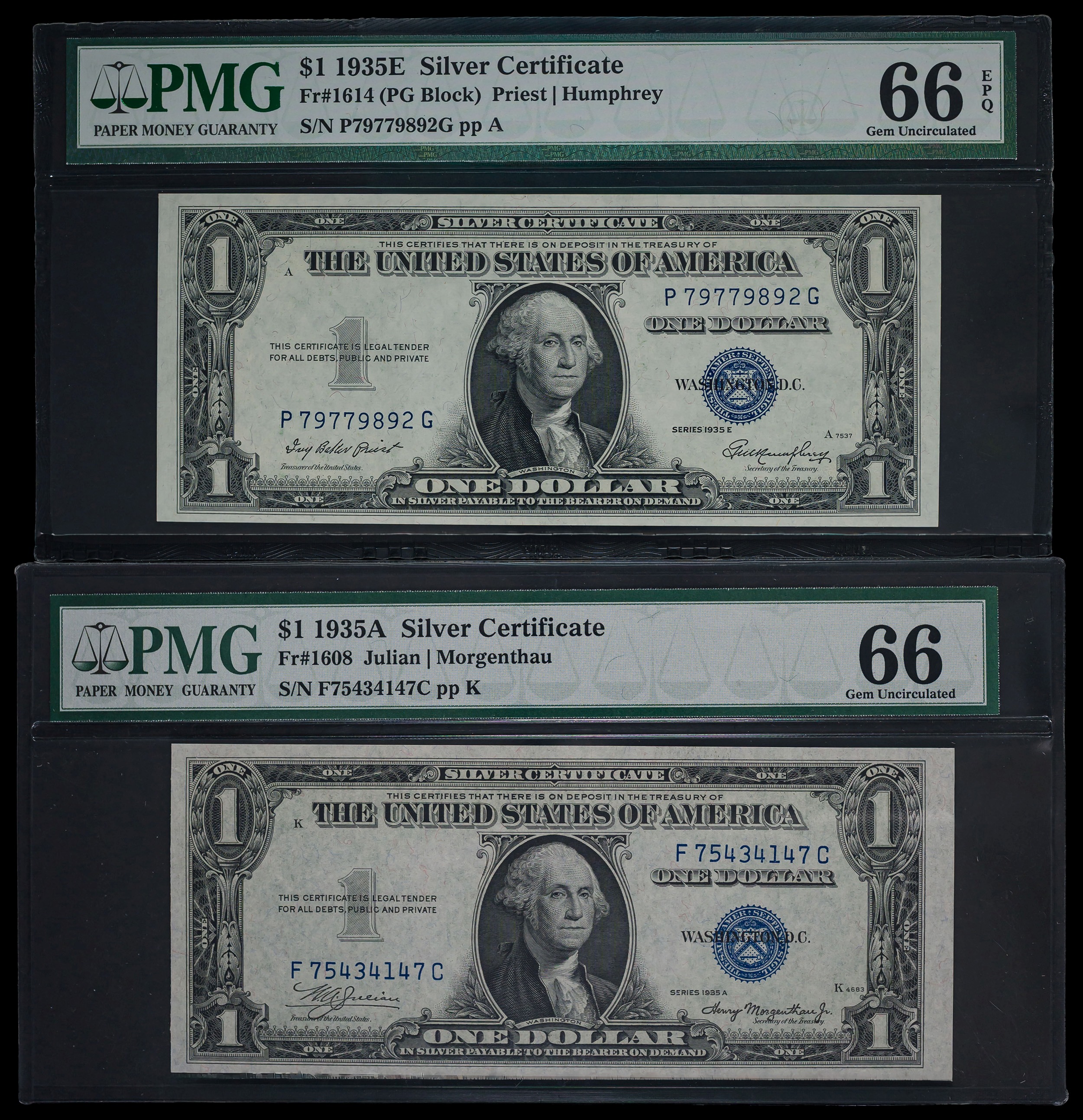 PMG Gem 1935A & 1935E $1 Silver Certificates