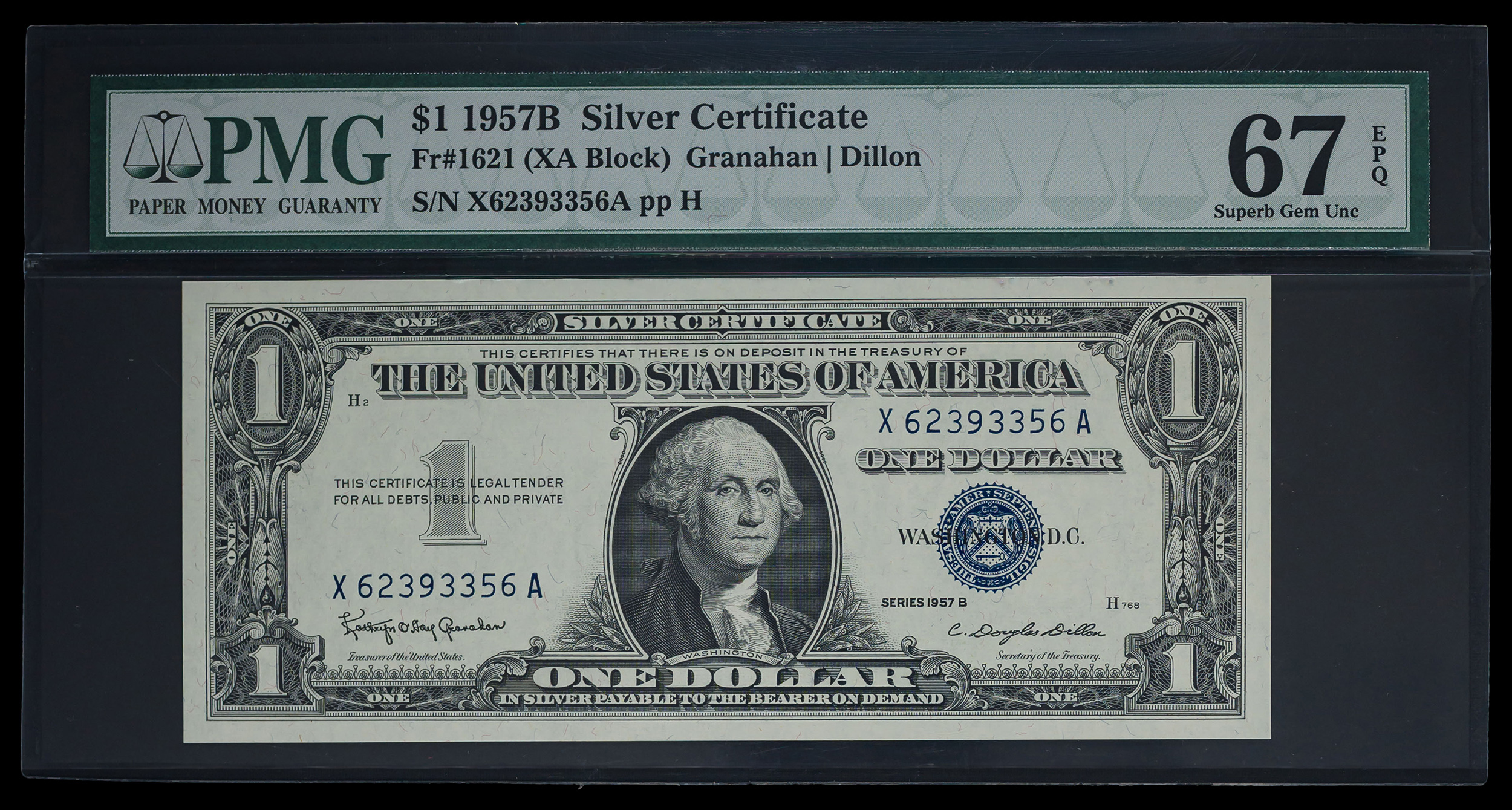 PMG Gem-67 EPQ 1957-B $1 Silver Certificate