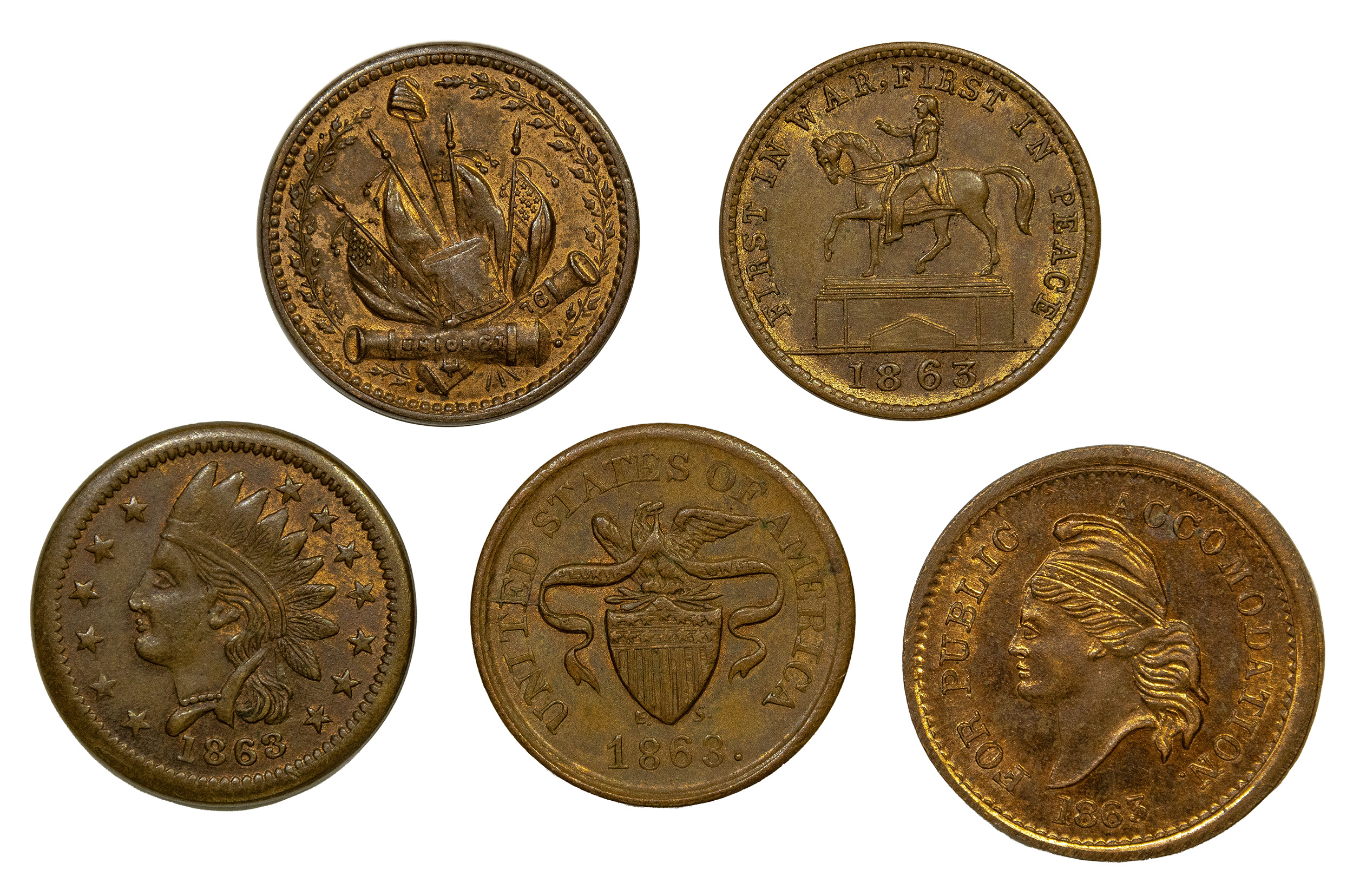 Civil War Tokens. Unc to Choice Unc Quintet