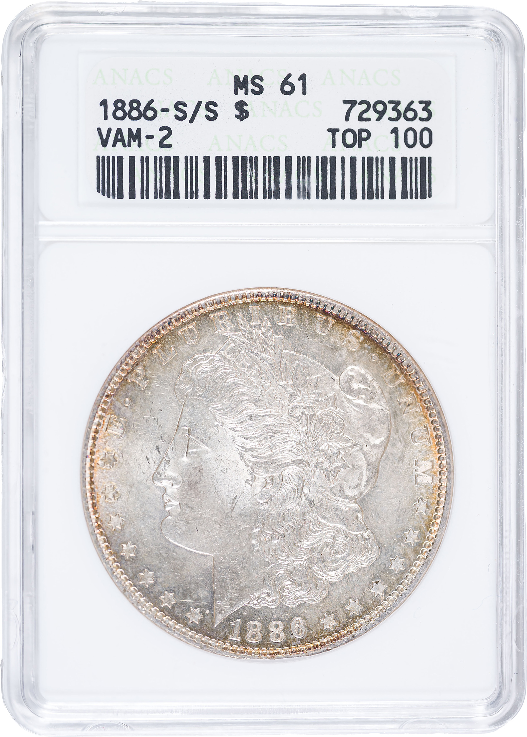 ANACS MS-61 VAM-2 1886-S/S Morgan Dollar