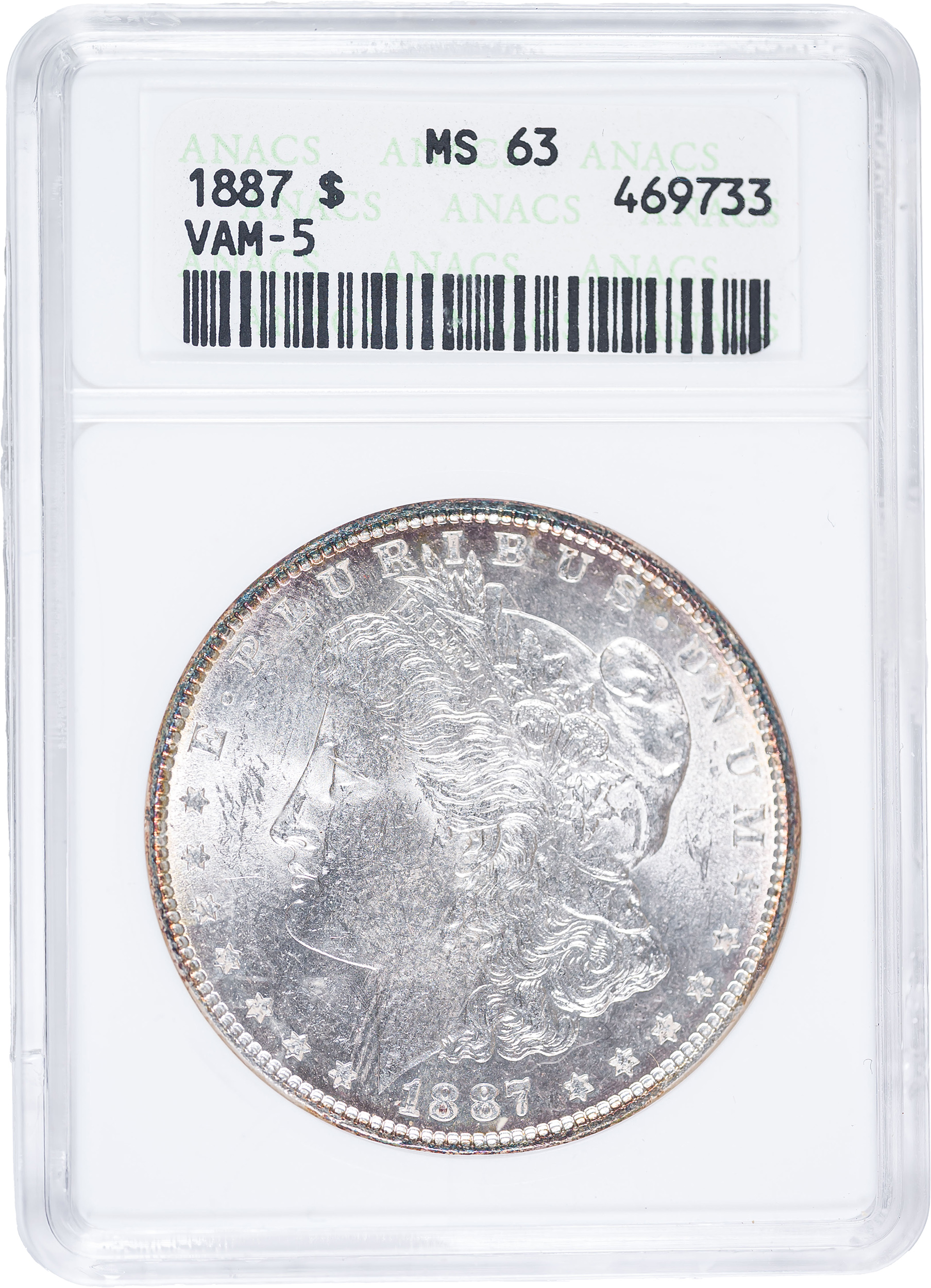 ANACS MS-63 VAM-5 1887 Morgan Dollar