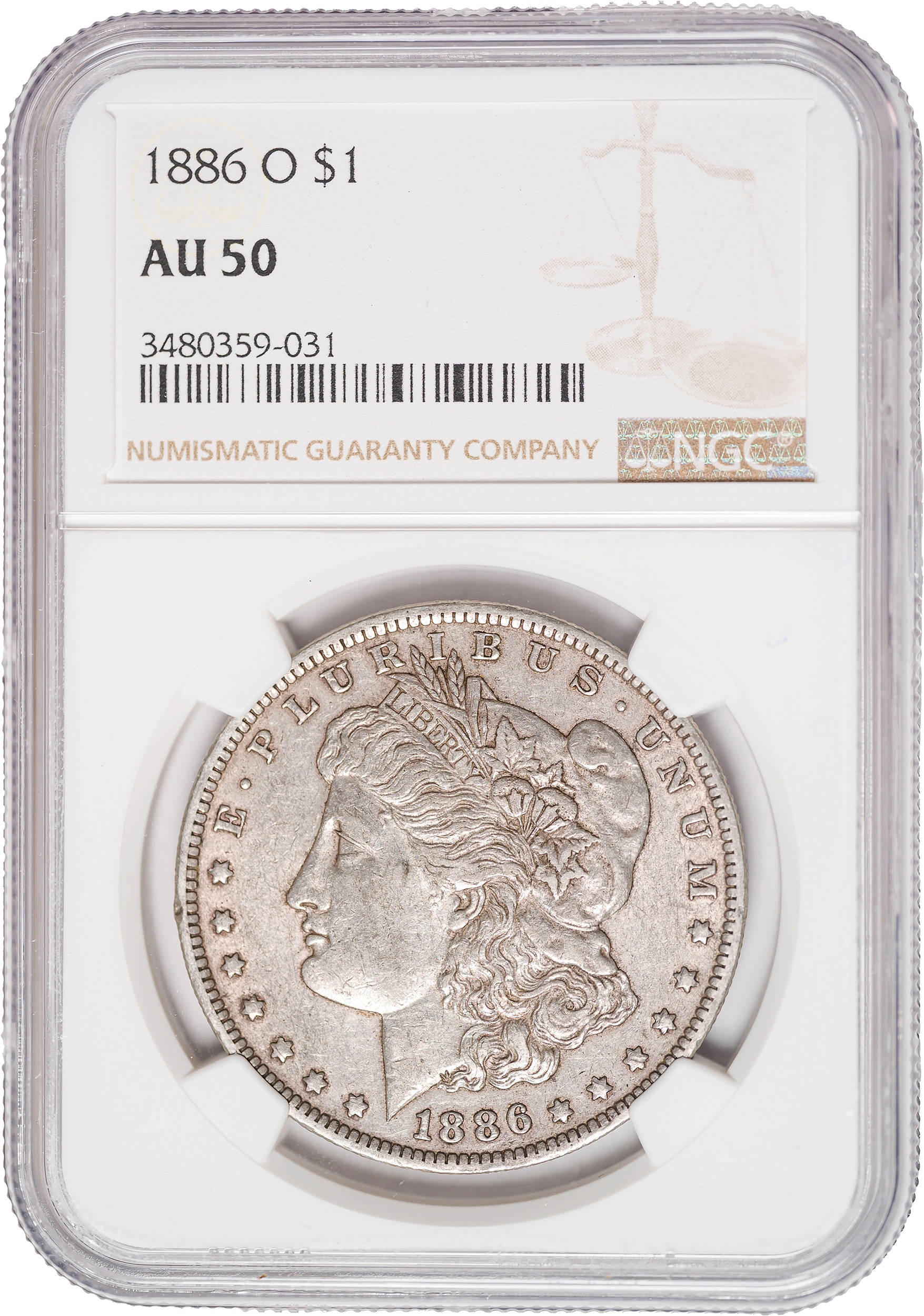 NGC AU-50 1886-O Morgan Dollar