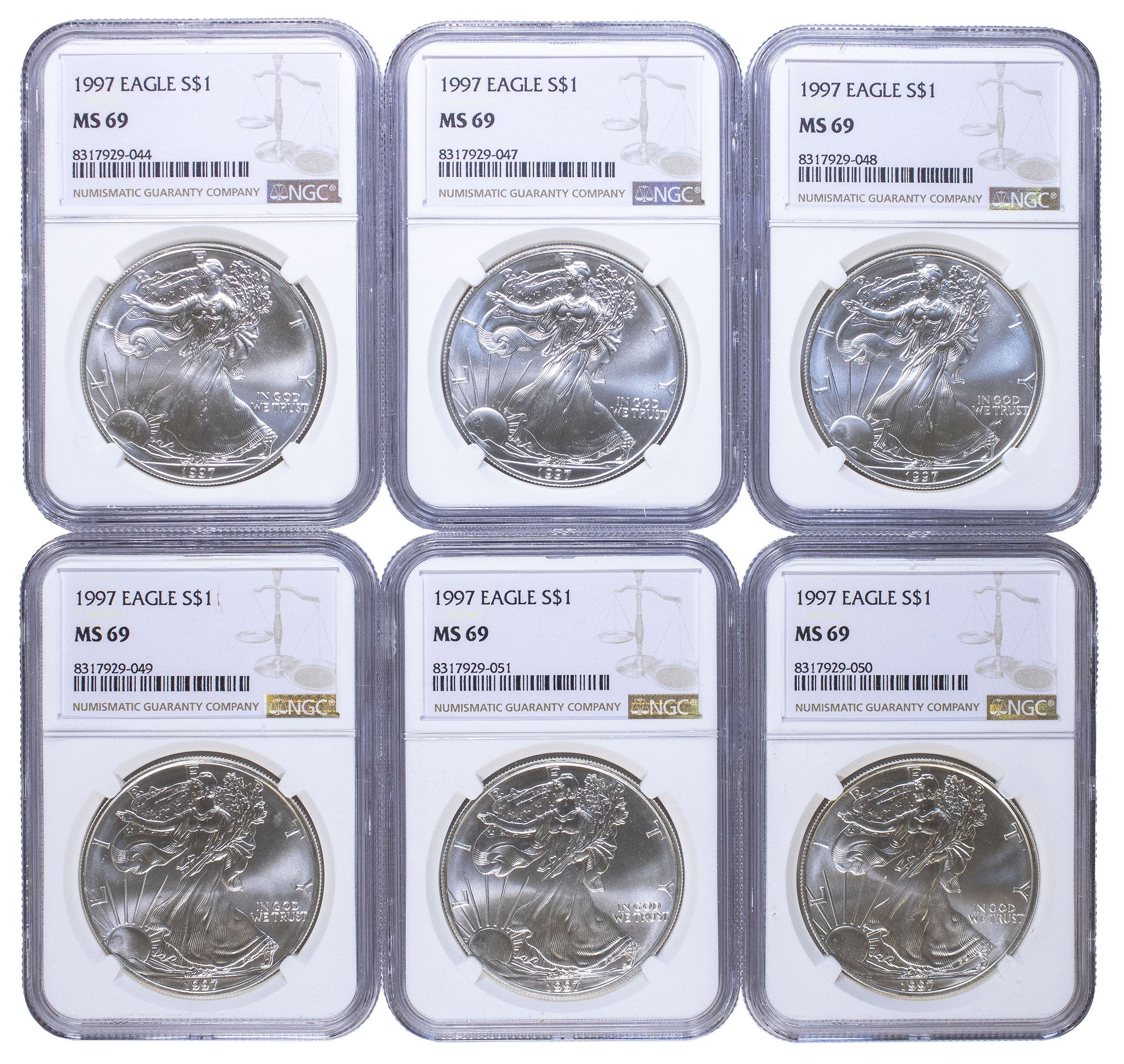 6 Pcs NGC MS-69 1997 Silver Eagles