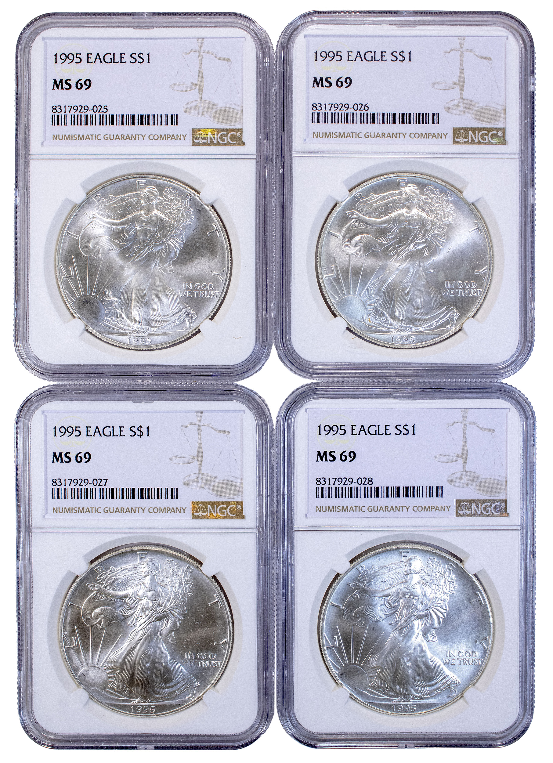 4 Pcs NGC MS-69 1995 Silver Eagles
