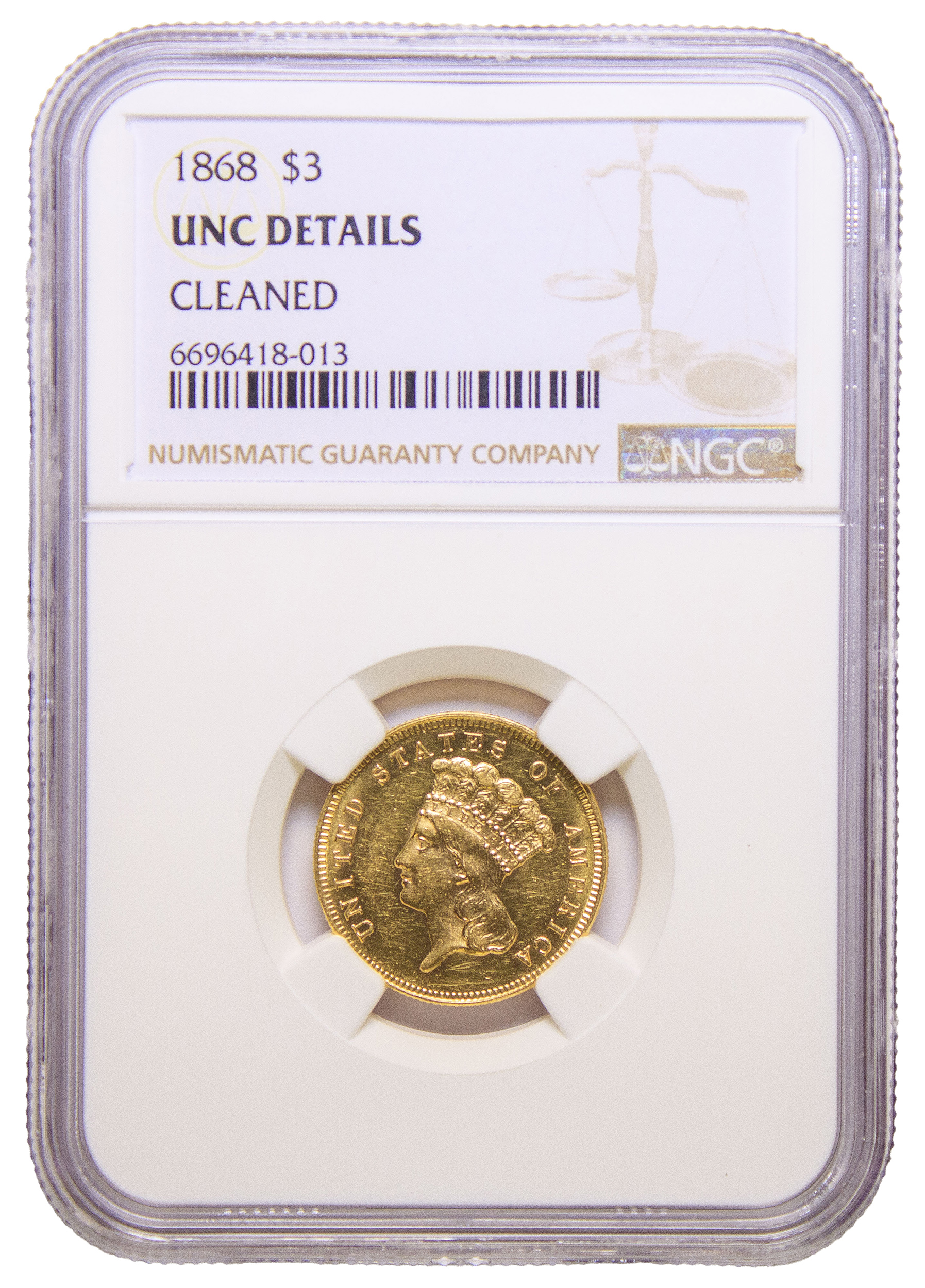 NGC UNC Details 1868 Gold $3