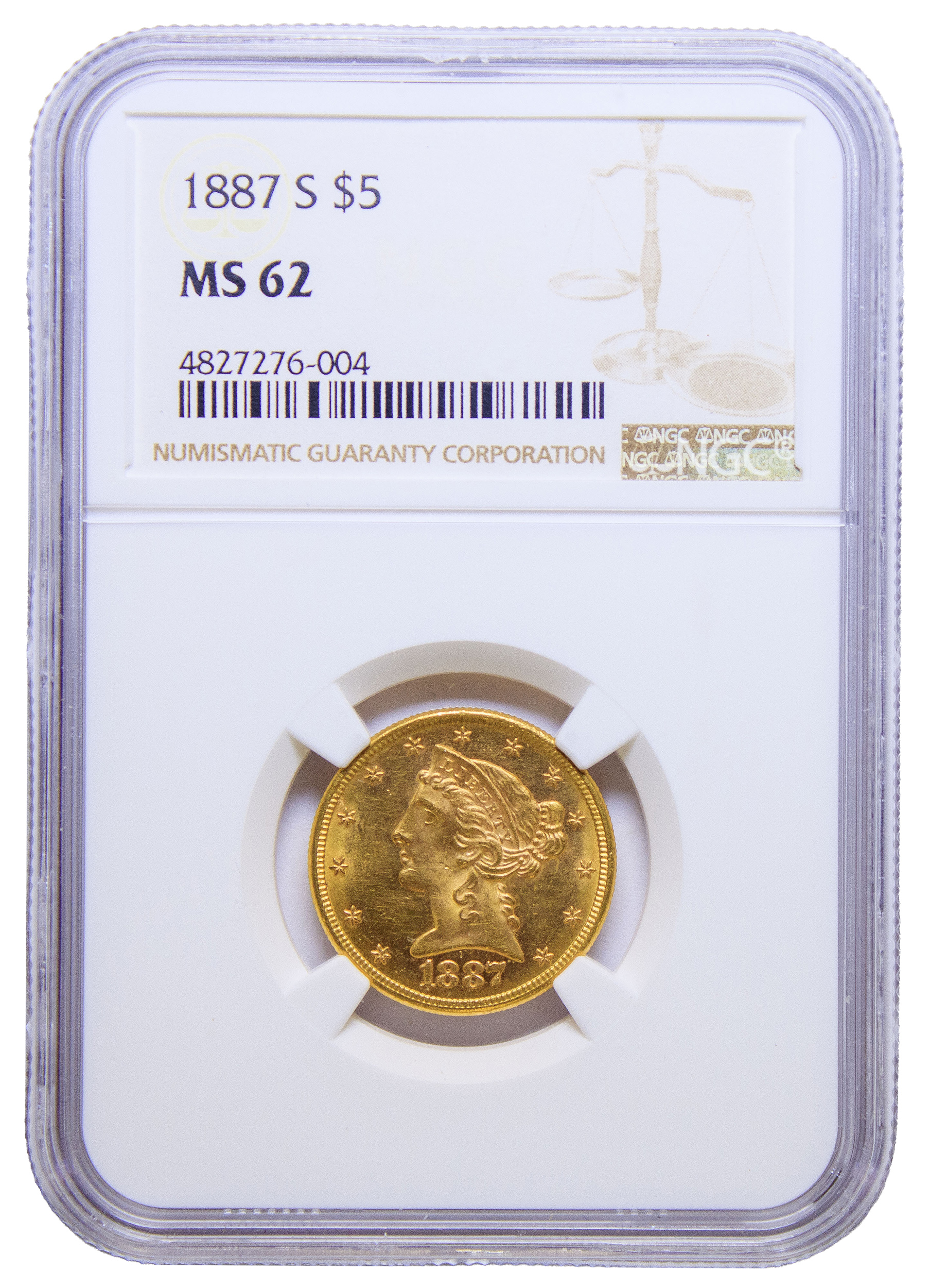 NGC MS-62 1887-S Gold $5 Liberty