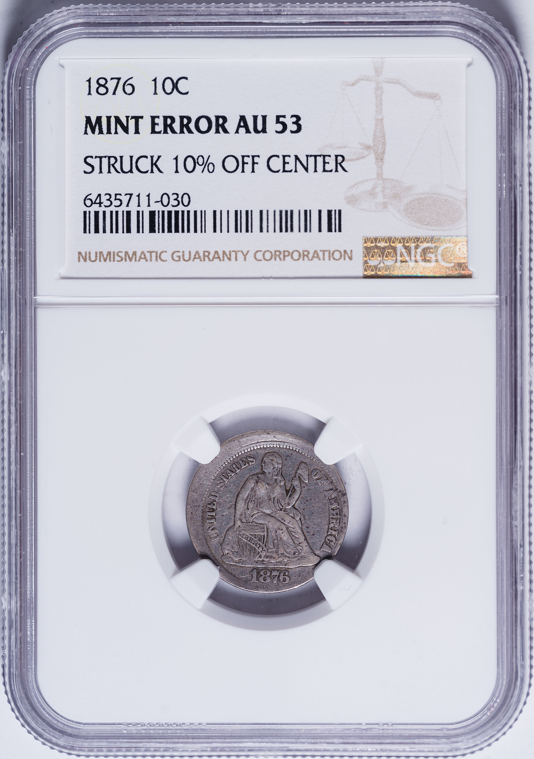 NGC AU-53 10% O/C 1876 Seated Dime Error
