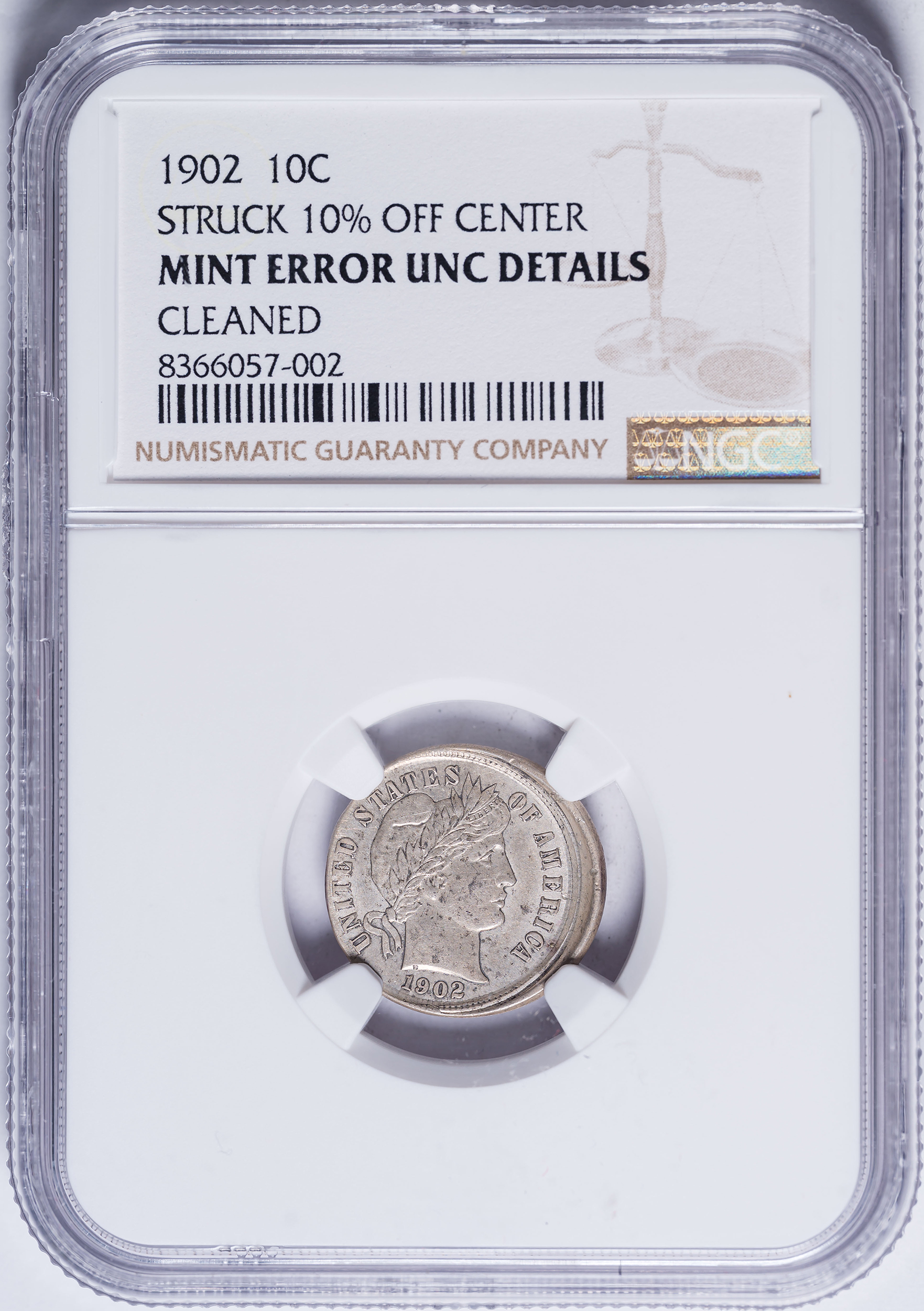 NGC UNC Details 1902 10% Off Center Barber Dime