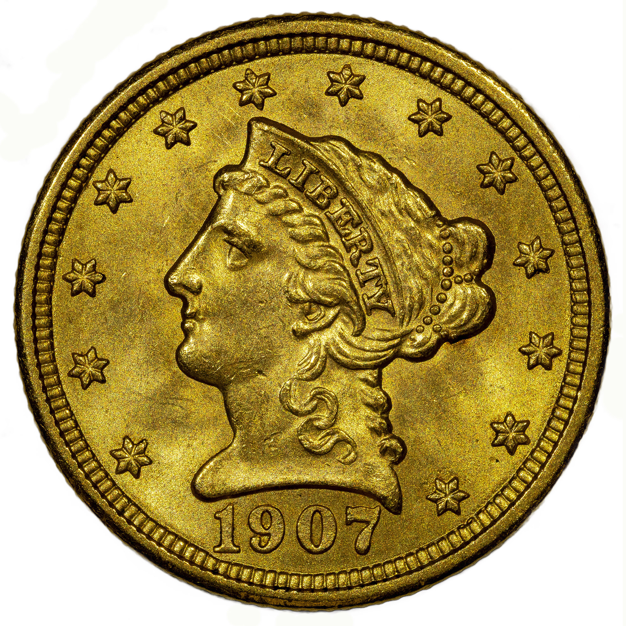 Choice BU-63+ 1907 $2.50 Gold Liberty