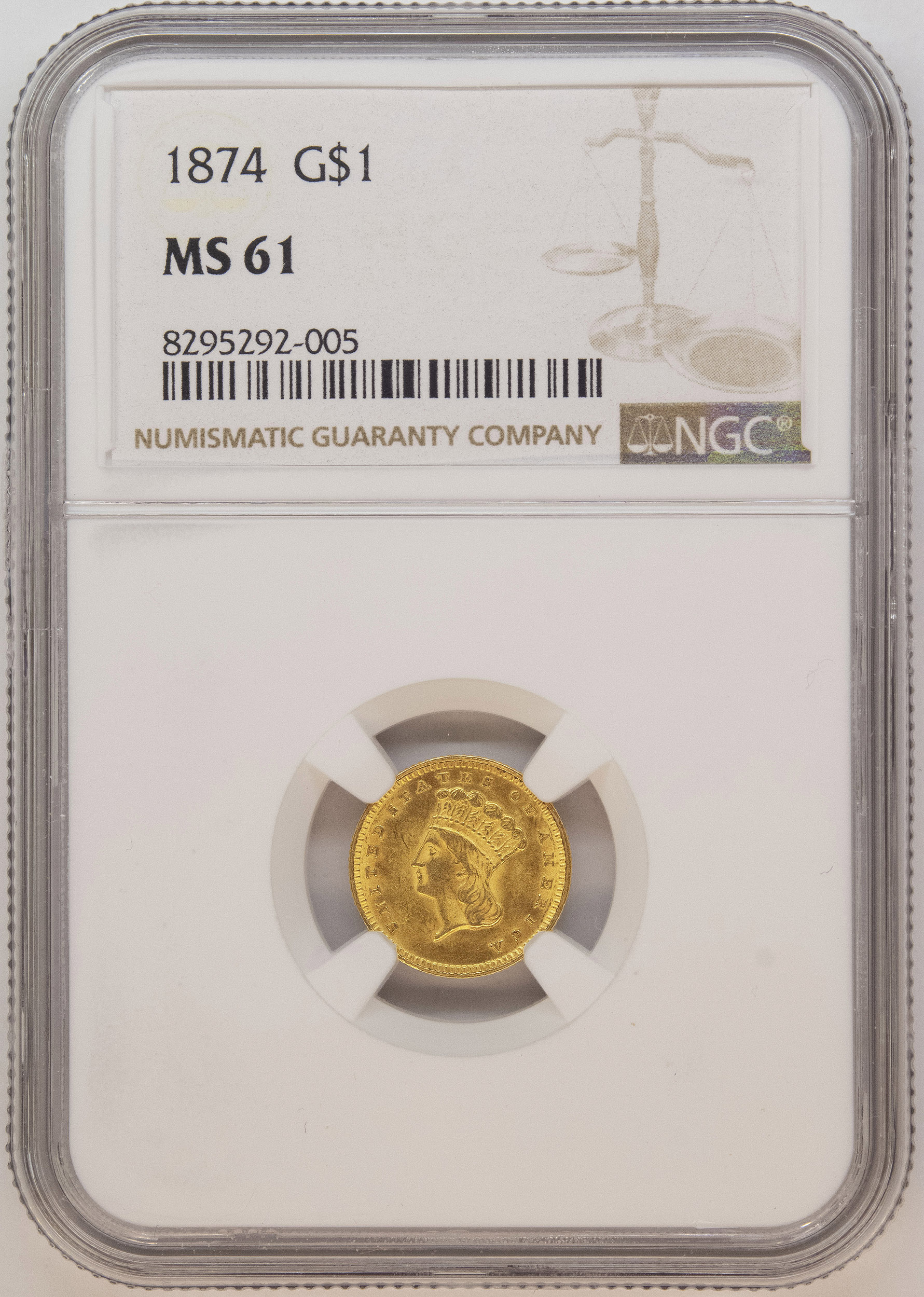 NGC MS-61 1874 Gold $1