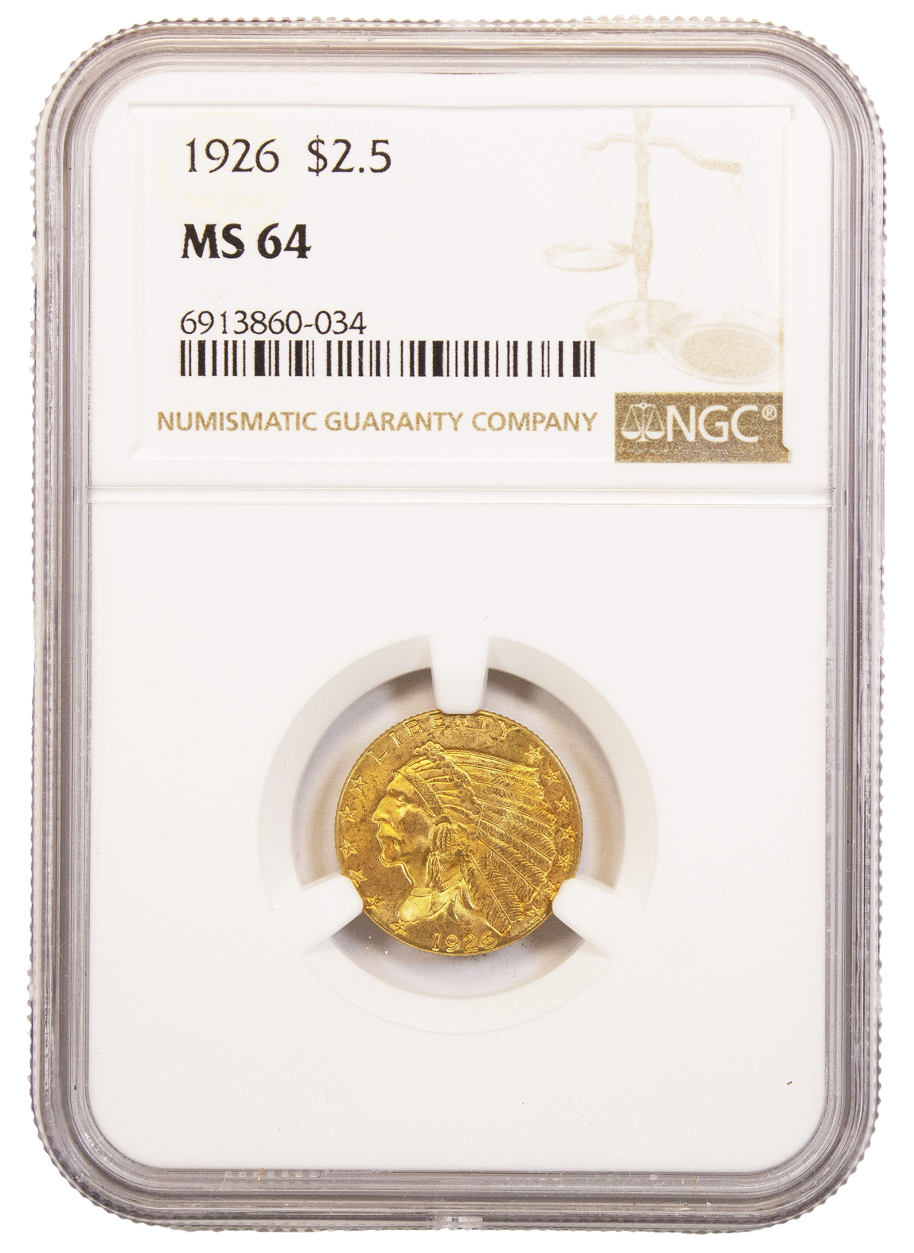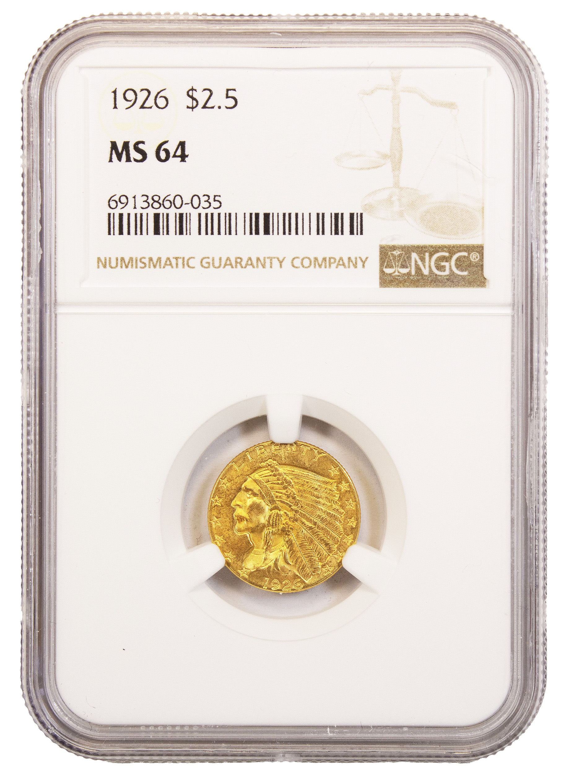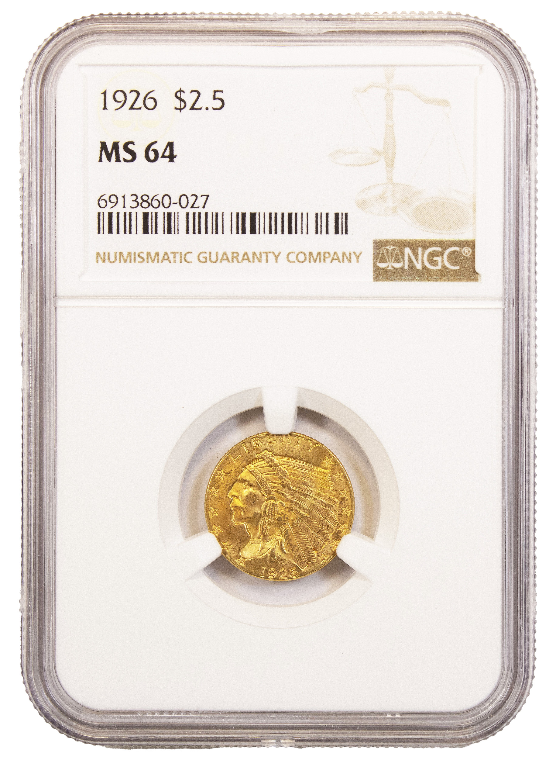 NGC MS-64 1926 $2.50 Gold Indian