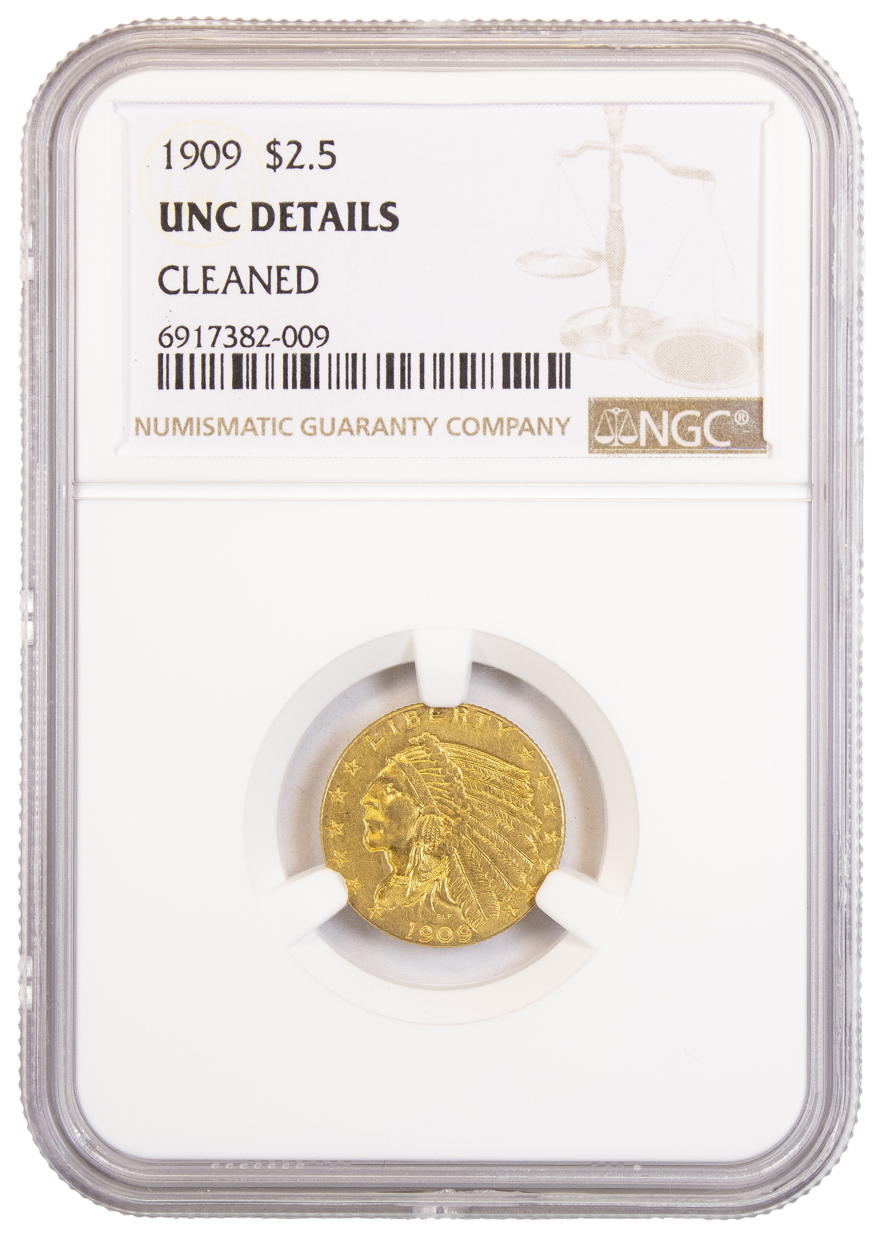 NGC Unc Details 1909 $2.50 Gold Indian