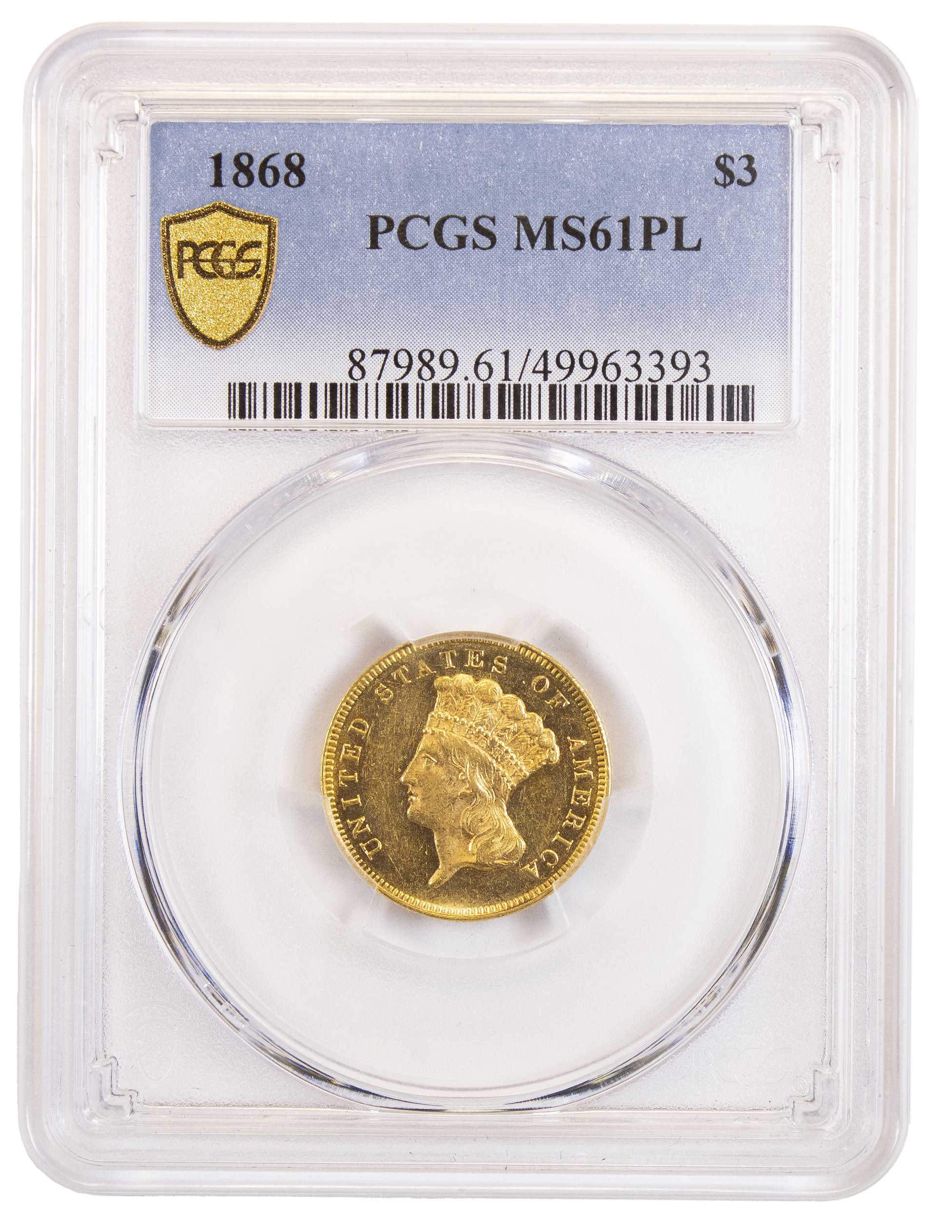 PCGS MS-61 PL 1868 $3 Gold
