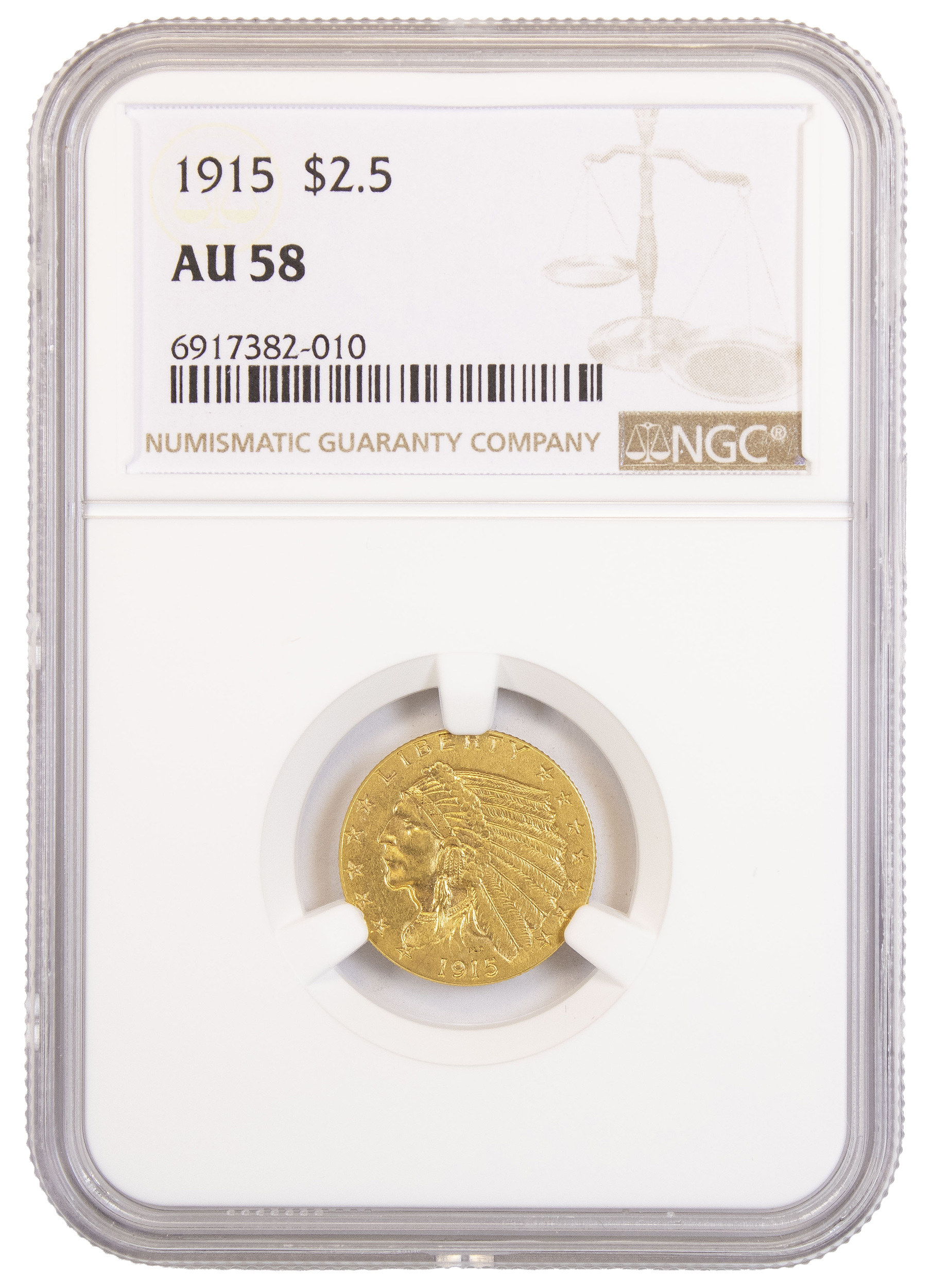 NGC AU-58 1915 $2.50 Gold Indian