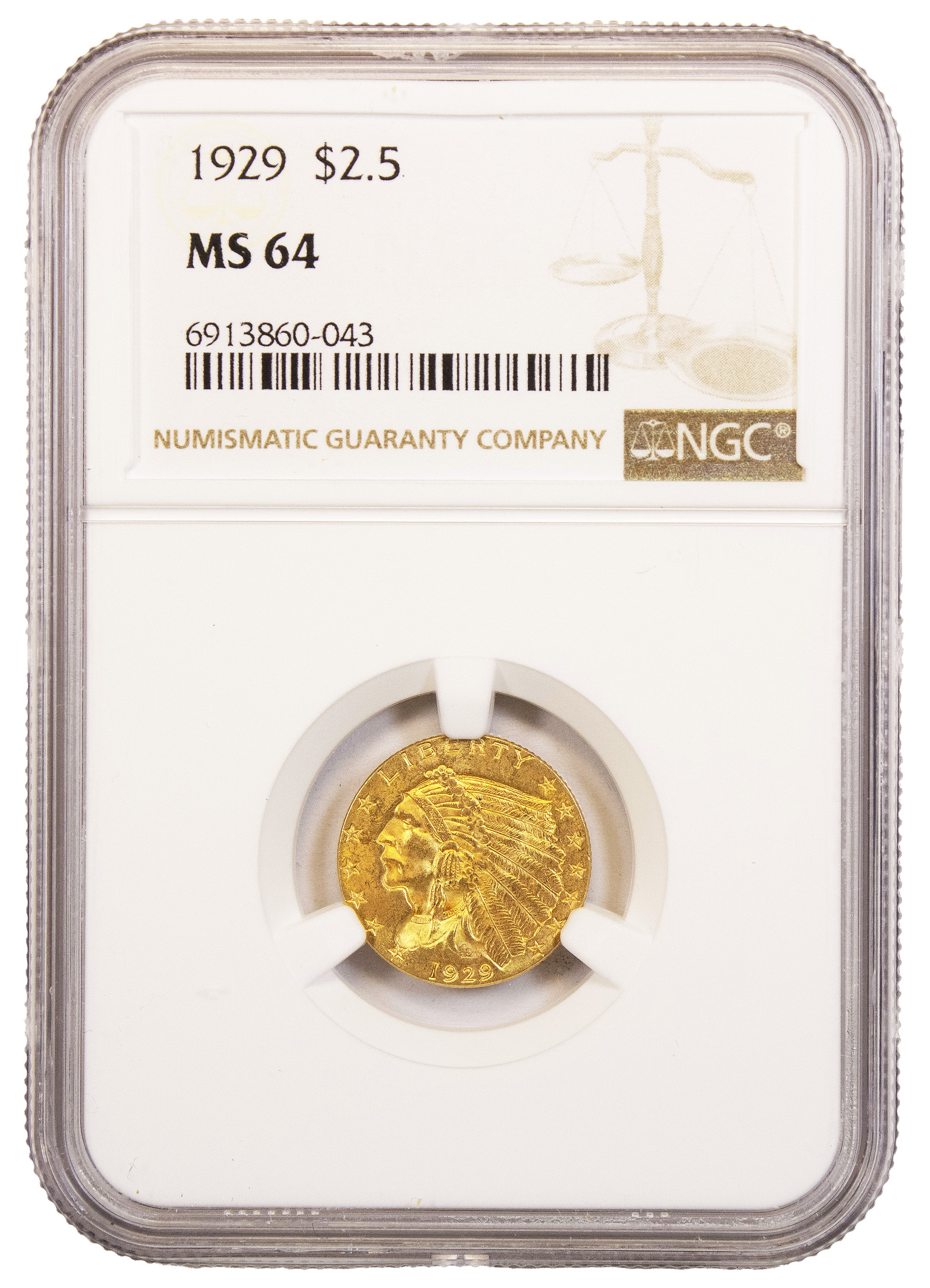 NGC MS-64 1929 $2.50 Gold Indian
