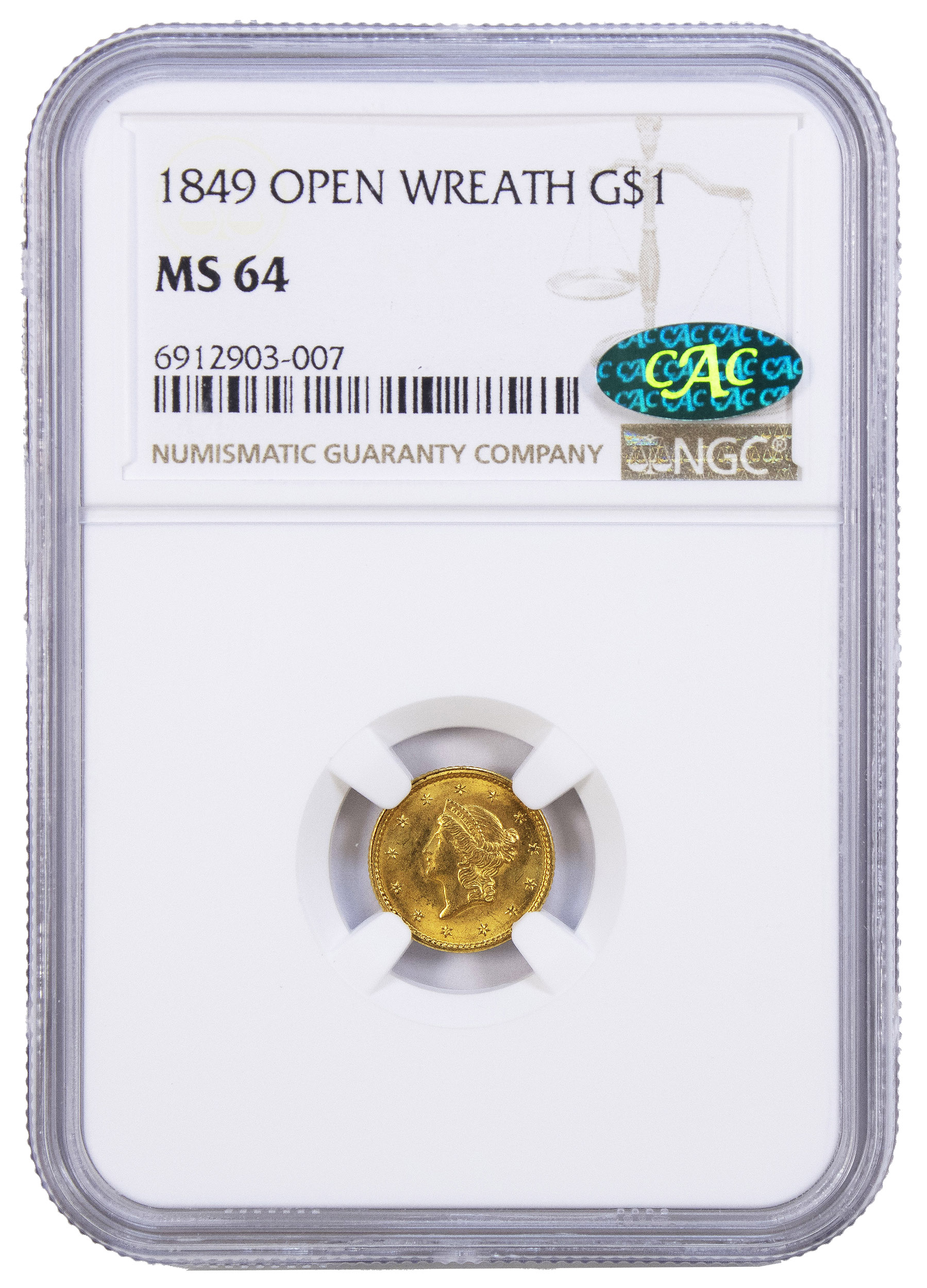 NGC MS-64 CAC 1849 Open Wreath Gold $1