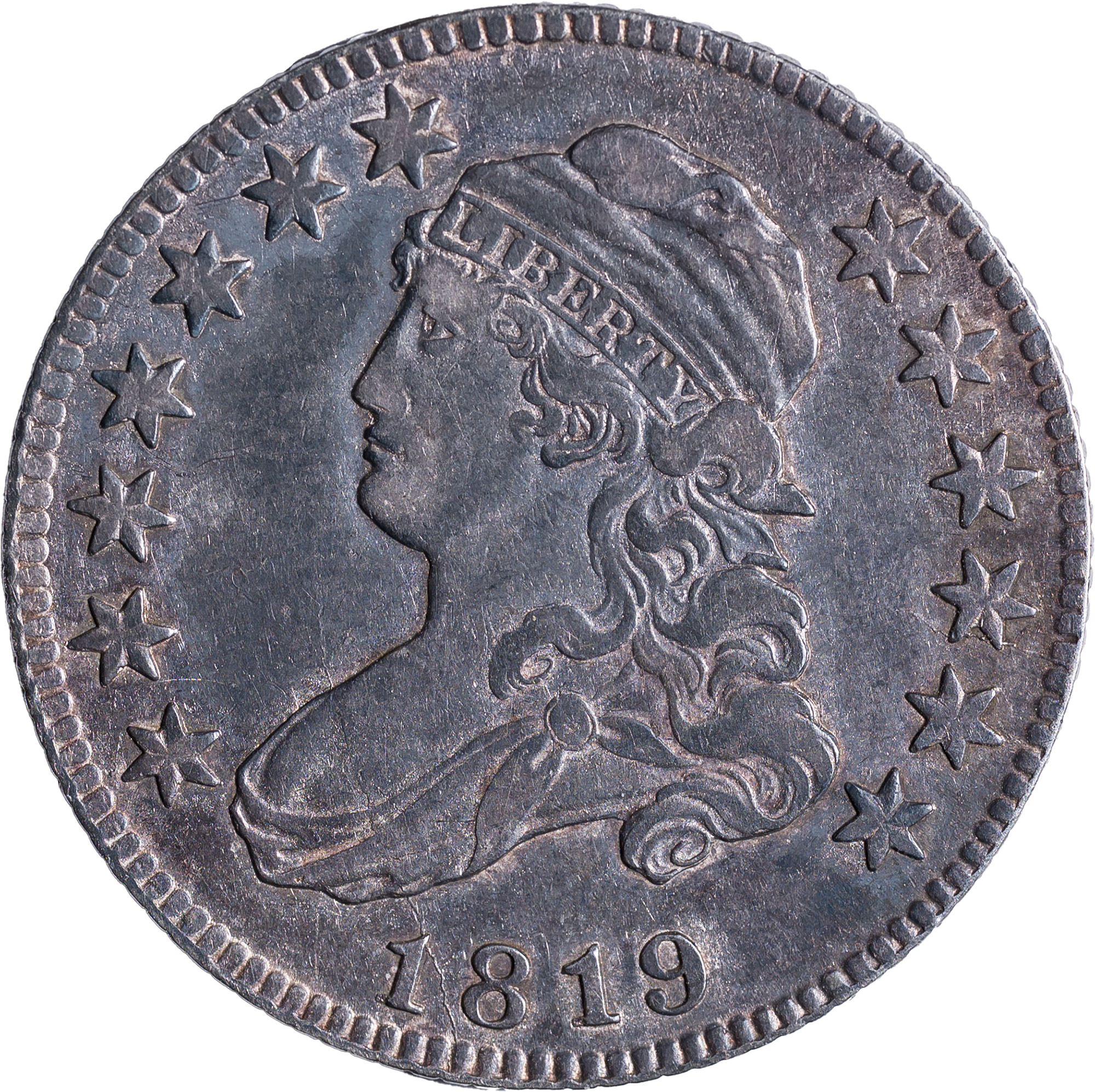 EF-40+ 1819 Toned Capped Bust Quarter