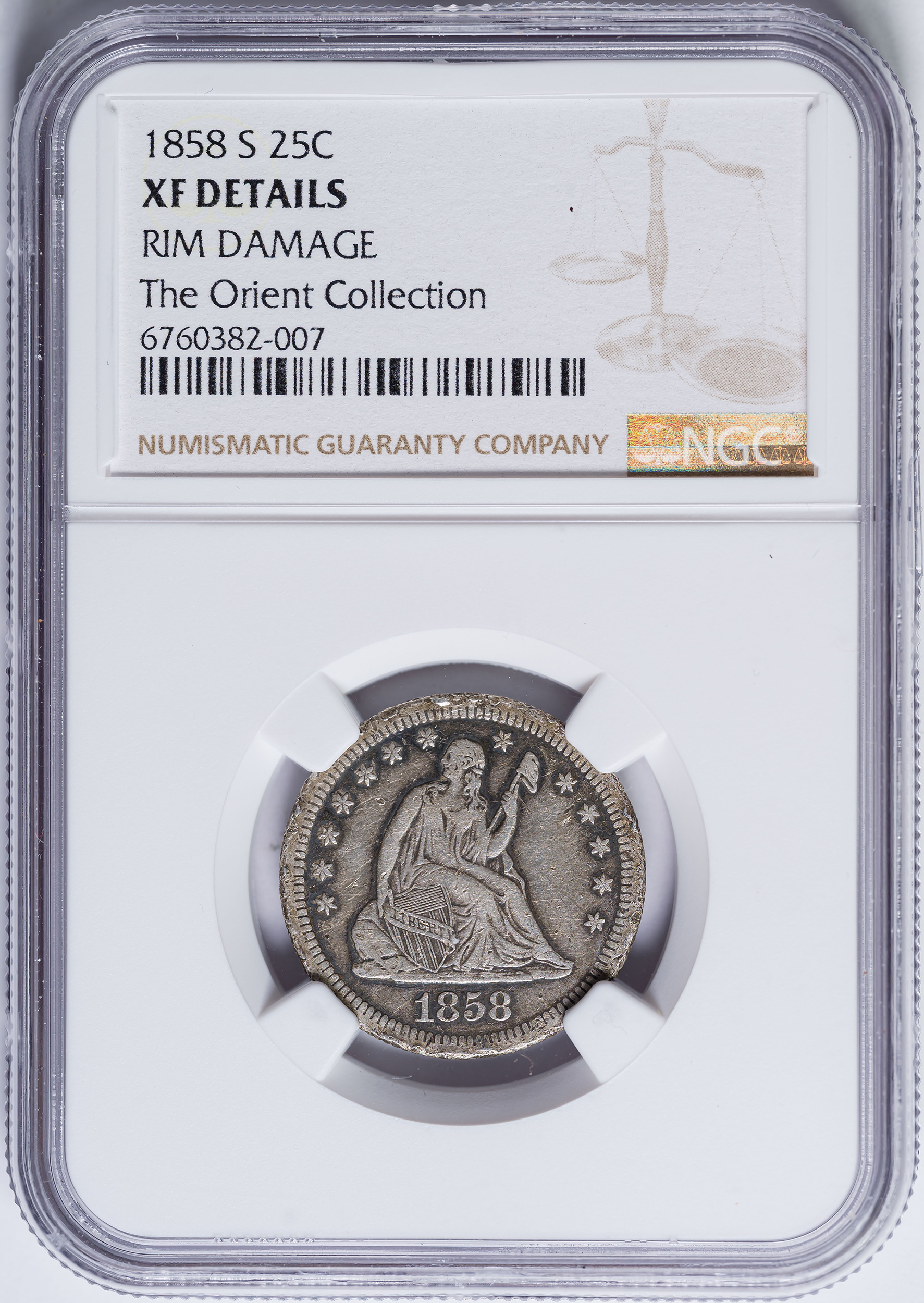 NGC EF Details 1858-S Seated Quarter