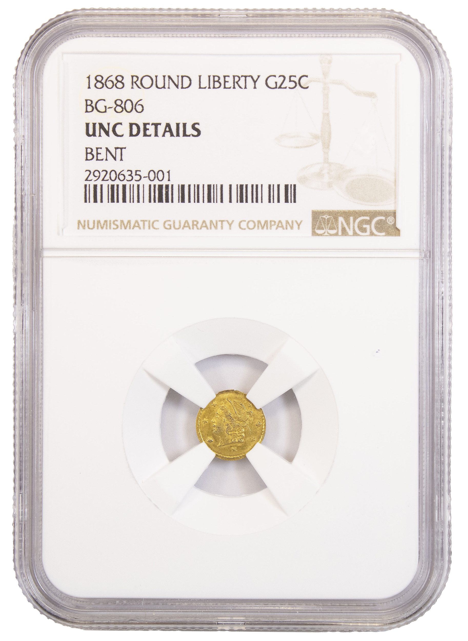 Cal Gold. NGC Unc Details 1868 Round Quarter
