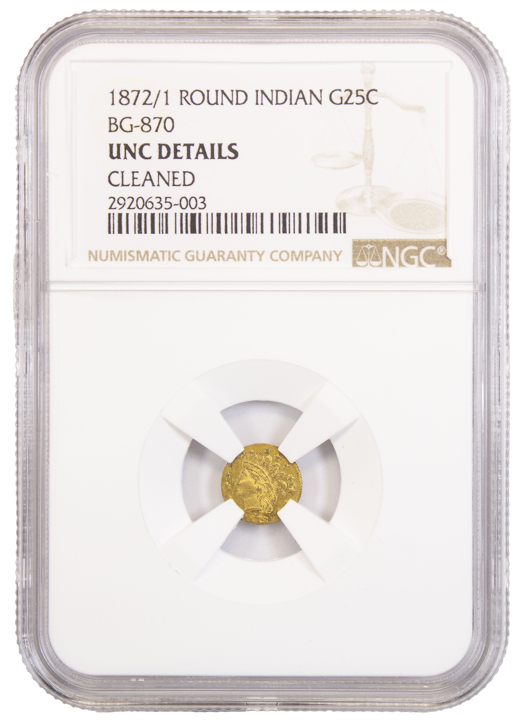 Cal Gold. NGC Unc Details 1872/1 Round Quarter
