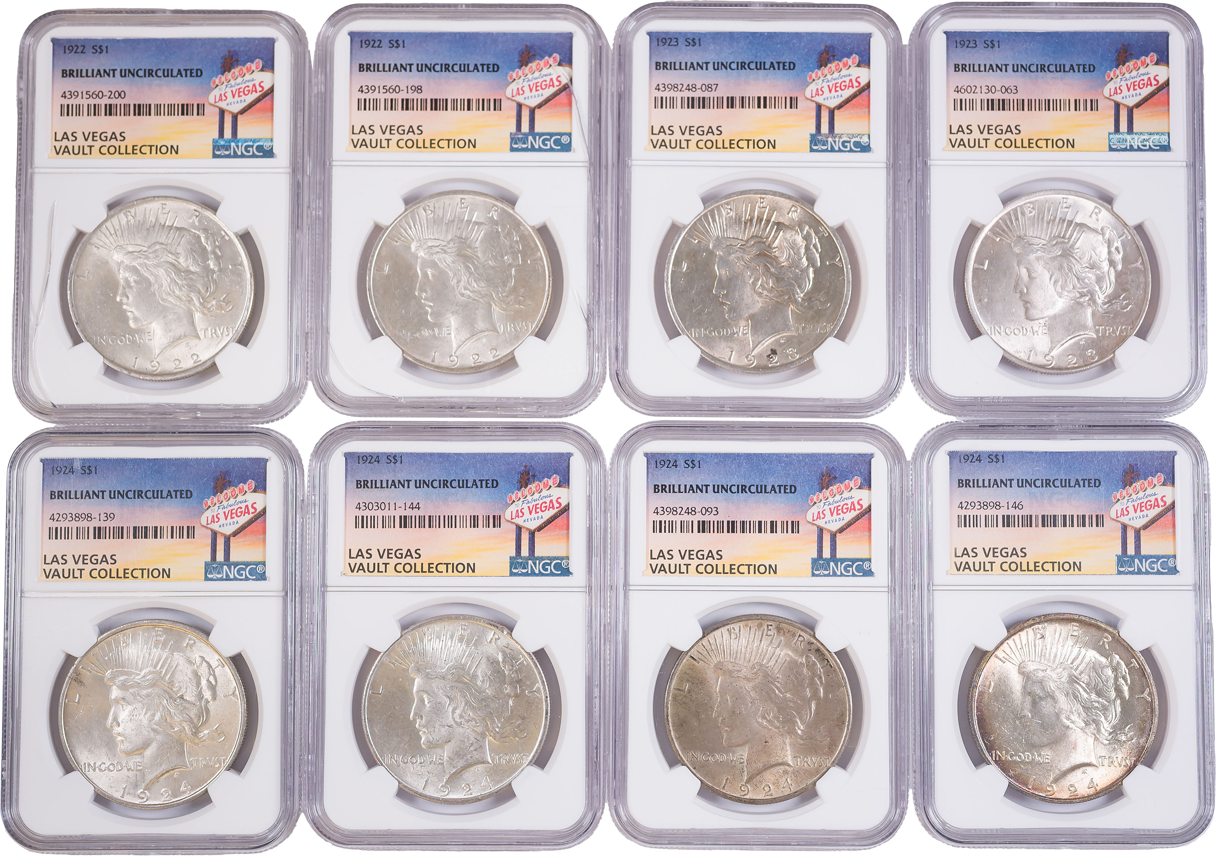8 PCS NGC Certified Peace Dollars
