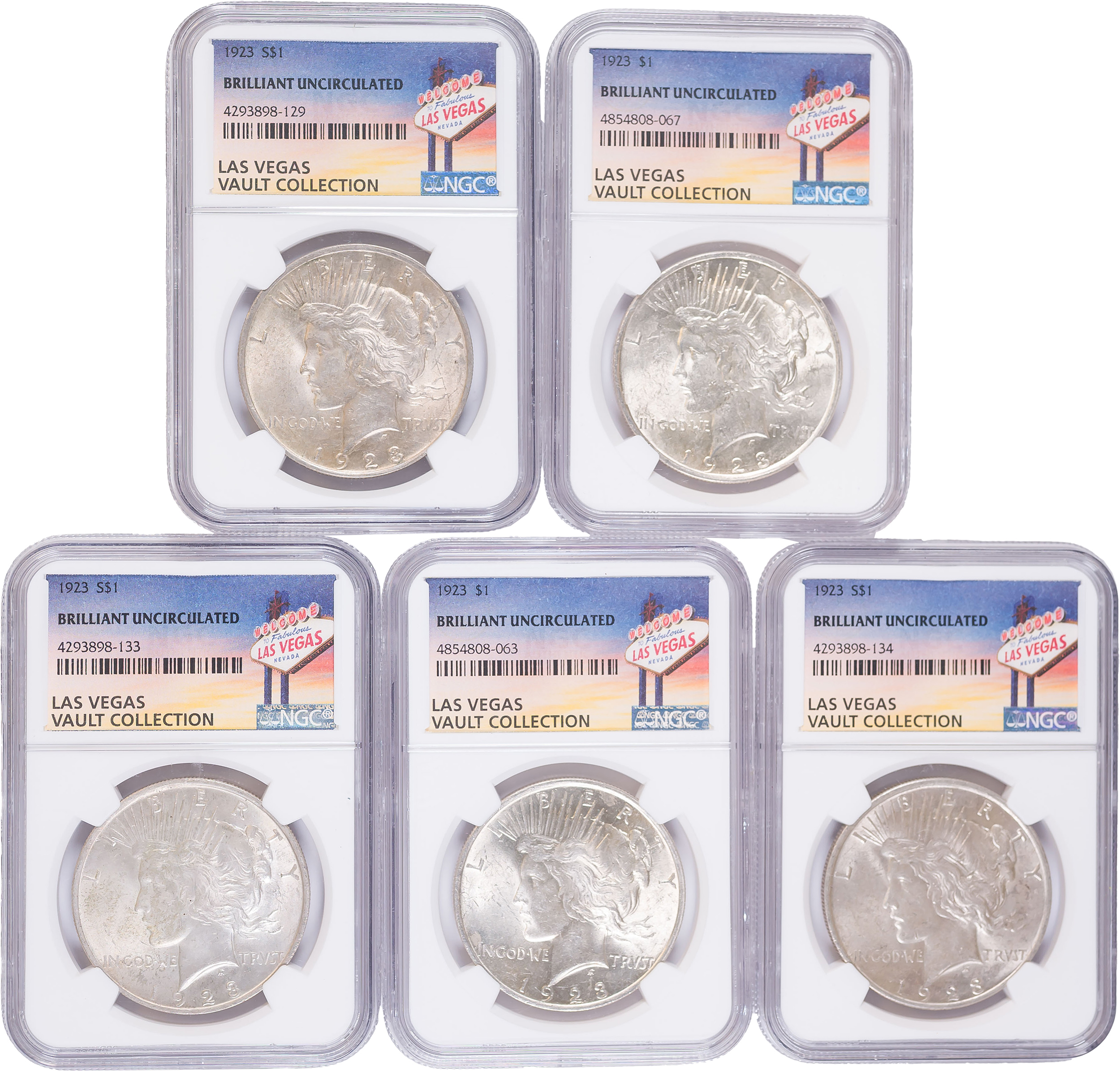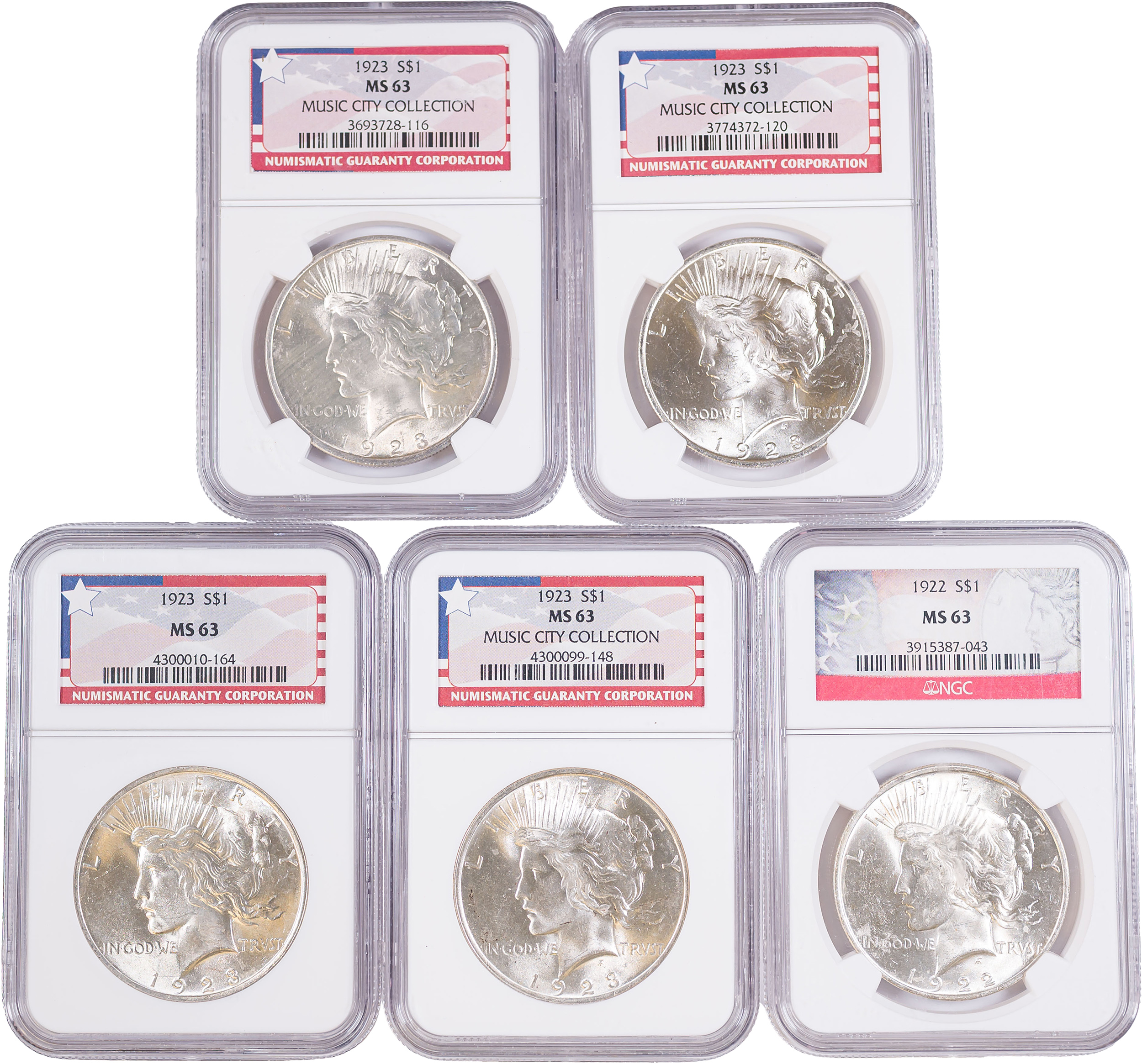 5 PCS NGC Certified 1923 Peace Dollars