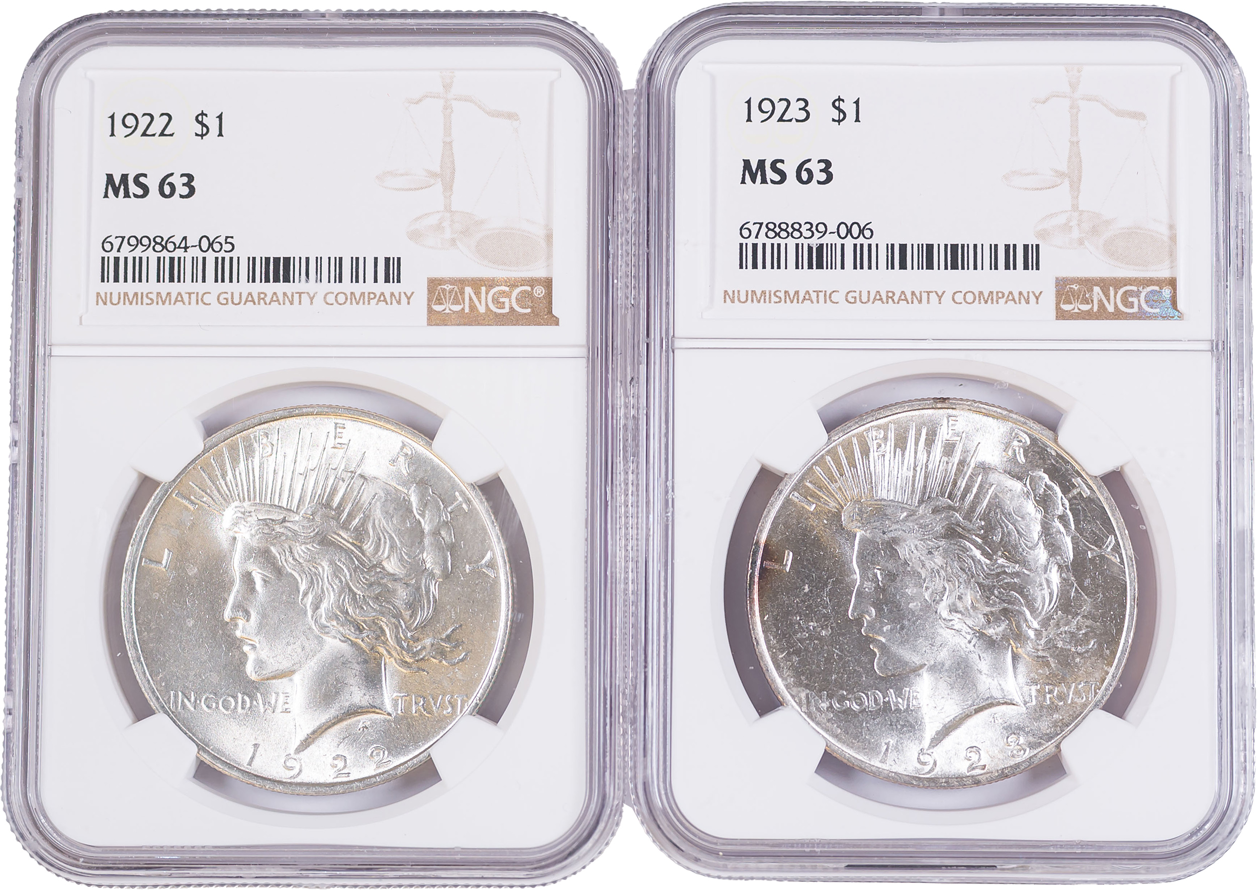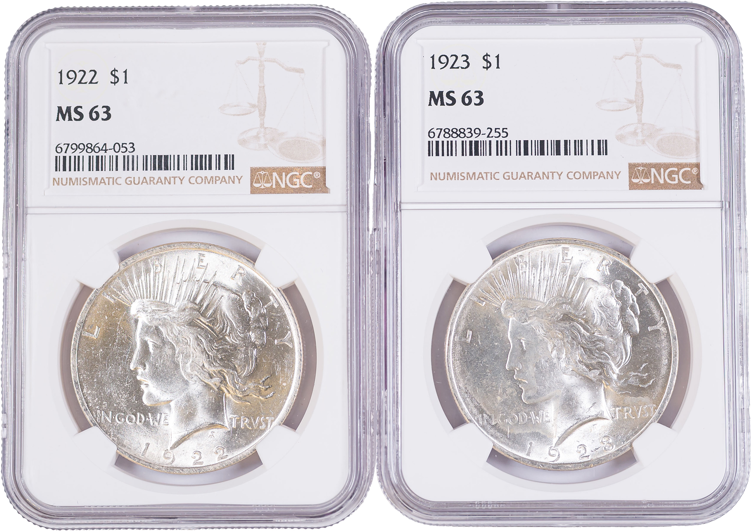 NGC MS-63 Peace Dollar Pair
