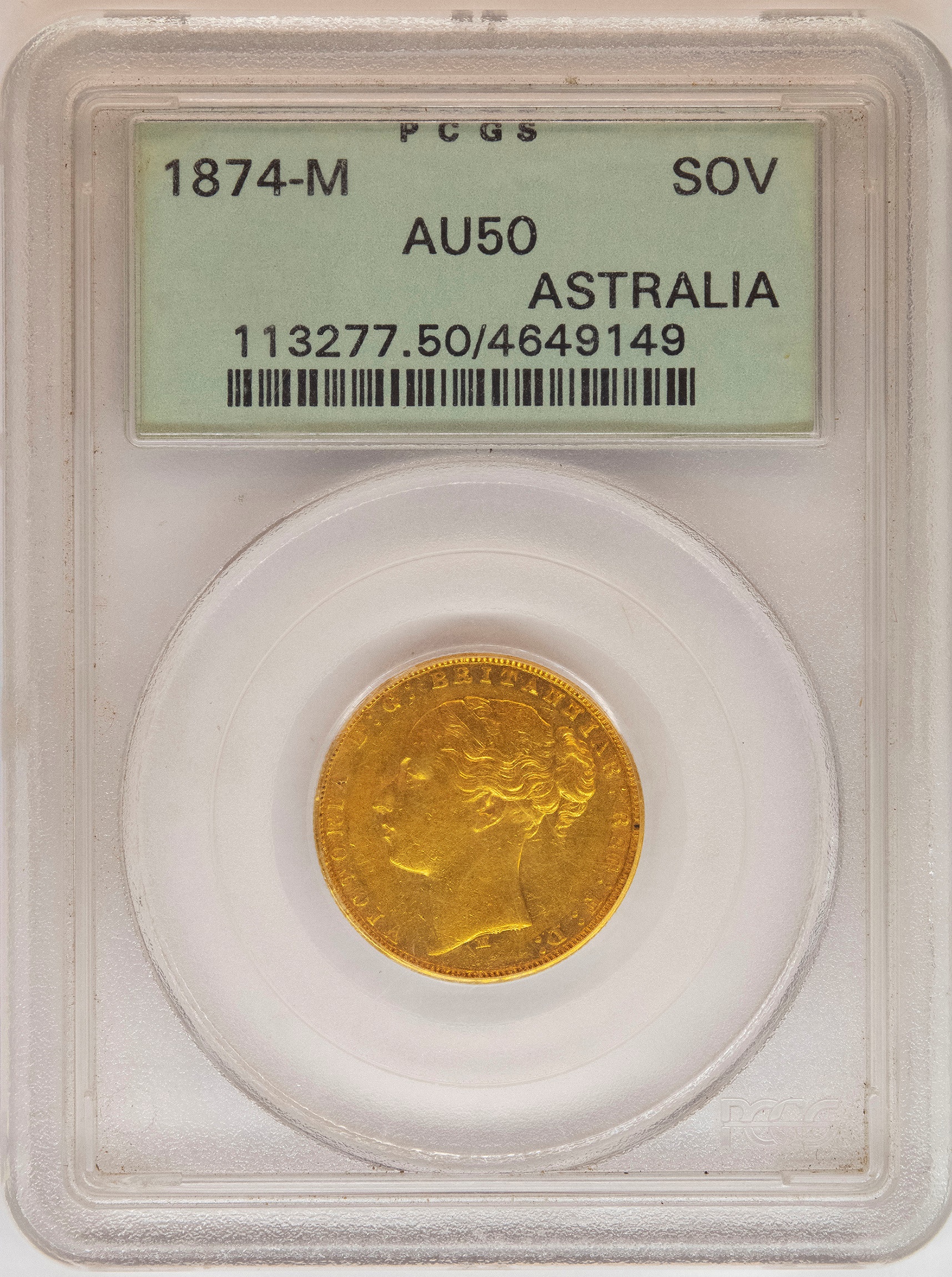 Australia. PCGS AU-50 1874-M Gold Sovereign