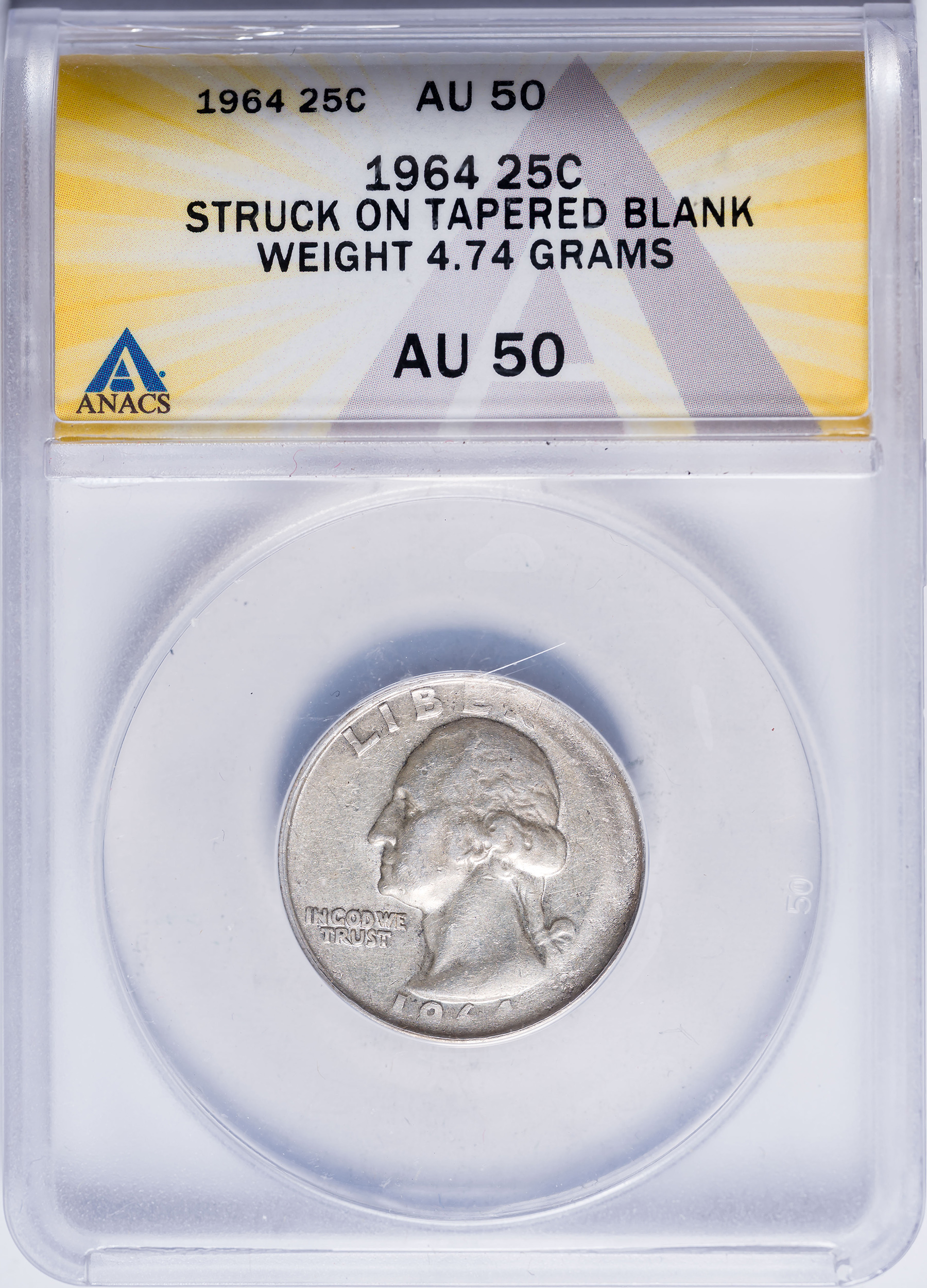 ANACS AU-50 1964 Washington Quarter Error