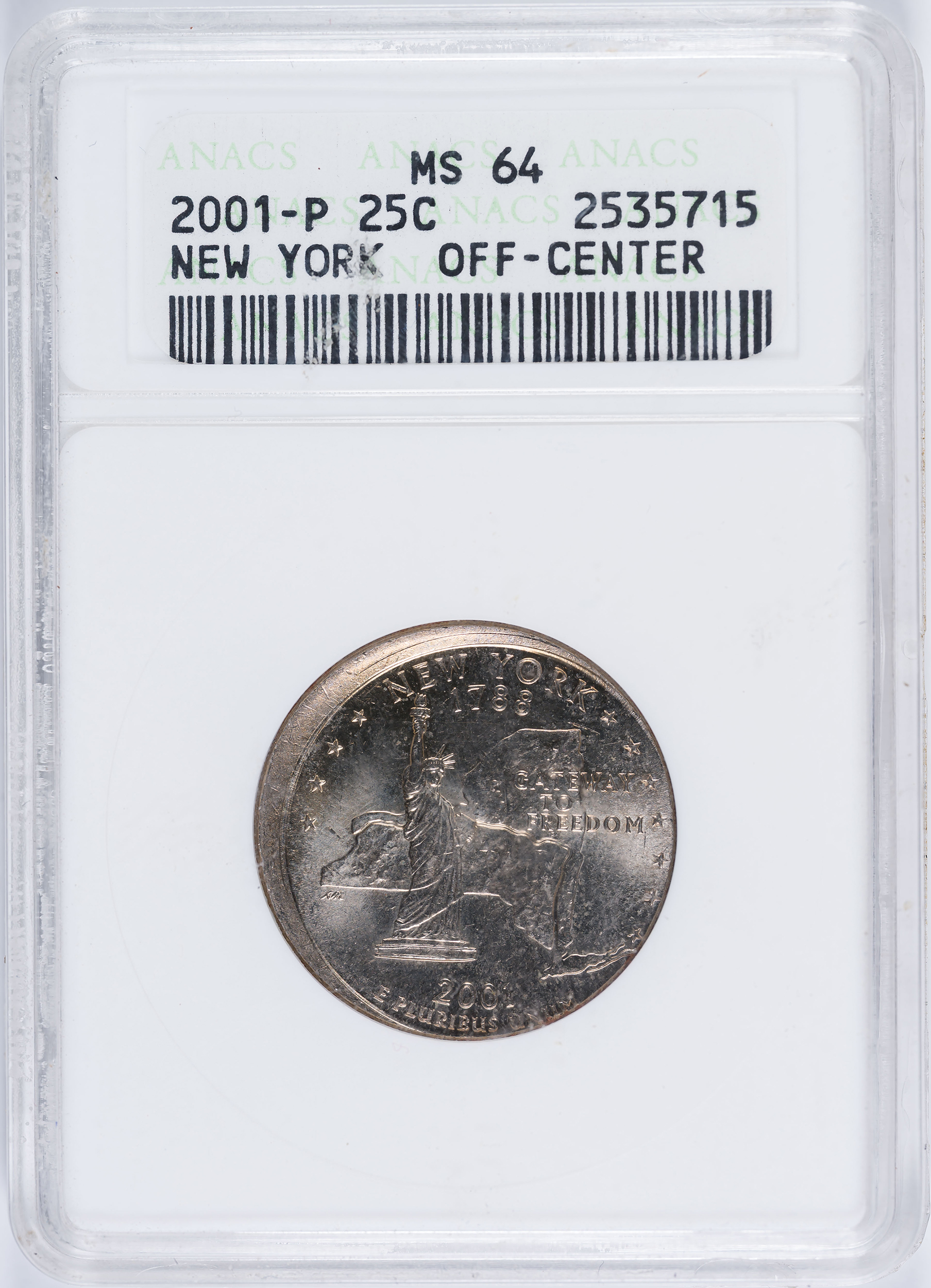 ANACS MS-64 2001 New York Quarter Error